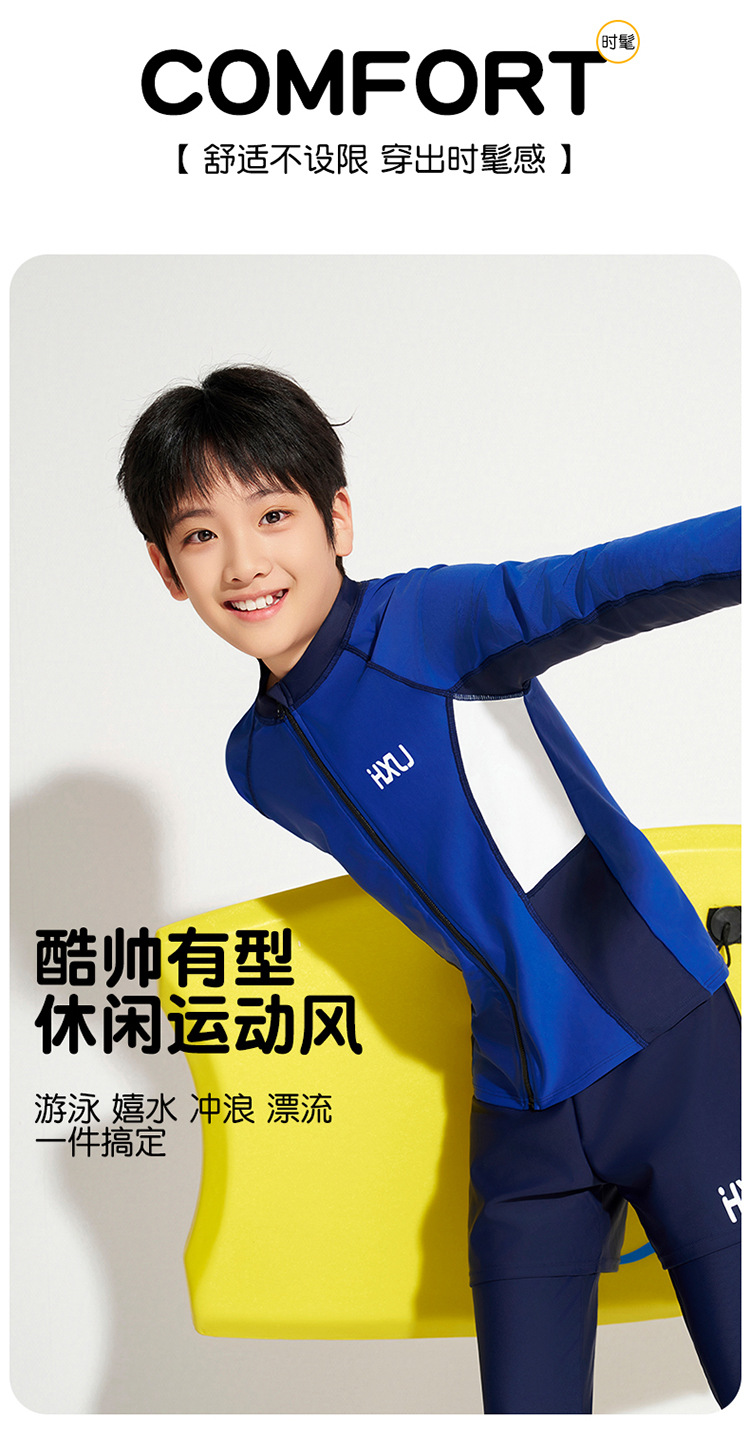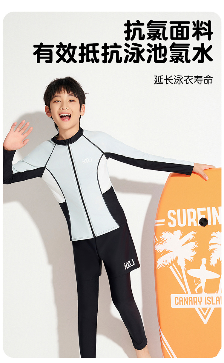 해시란징 청소년 및 어린이용 자외선 차단 분리형 긴팔 긴바지 속건 수영복 아동 수영복 남아 수영복