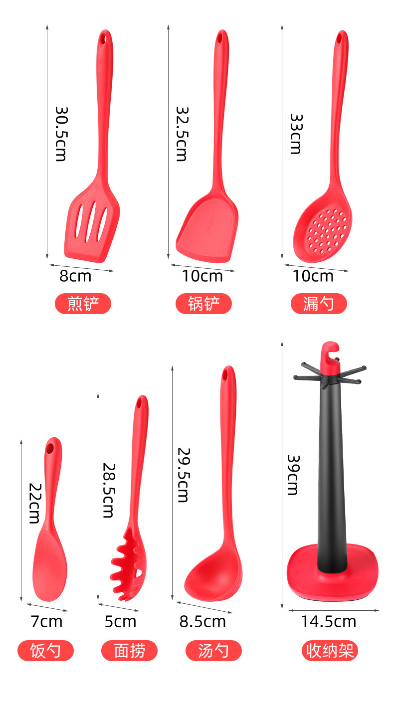 ✅식품 등급 고온 내성 실리콘 삽 비 스틱 팬 삽 요리 수프 숟가락 소쿠리 쌀 삽 7 개스토어 가기