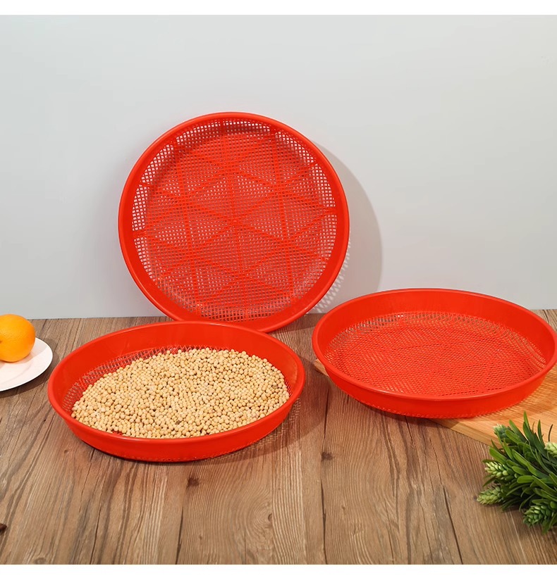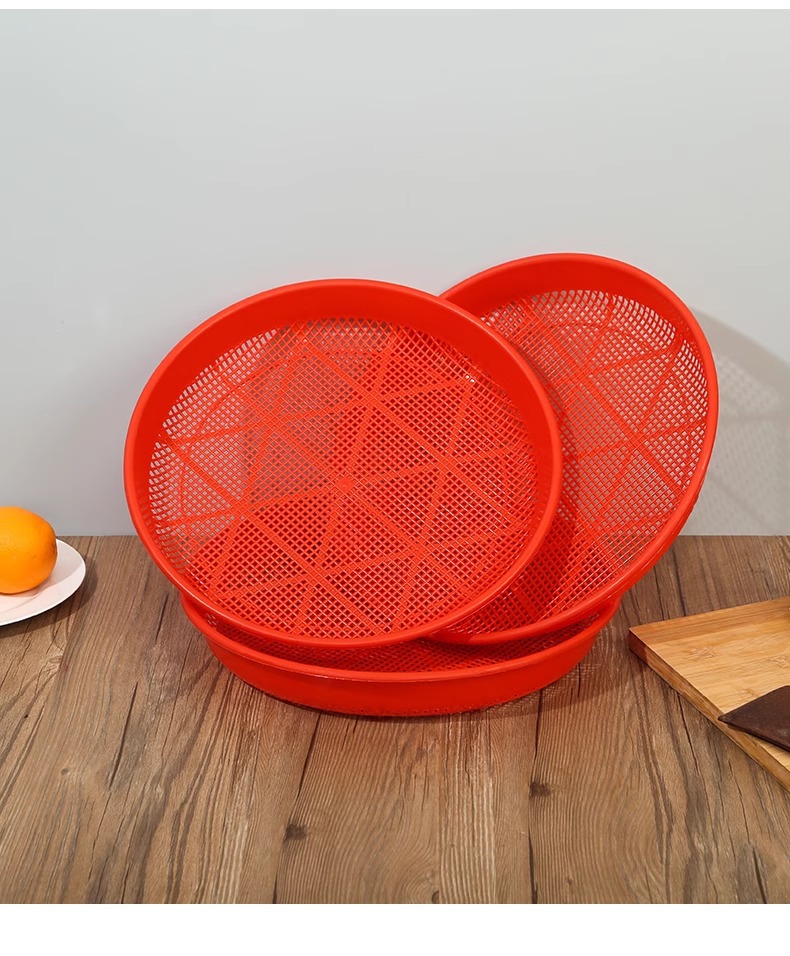 플라스틱 체 라운드 먼지 팬 가구 상업 건조 것 체 쌀 크기 건조 바구니 미세 구멍 필터 모조 대나무 대나무 건조 그물