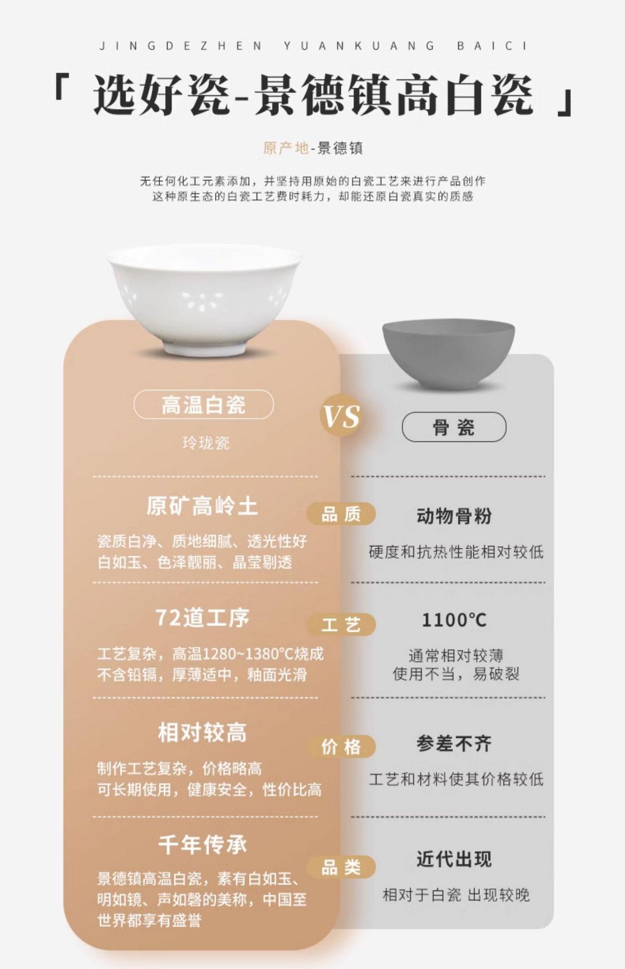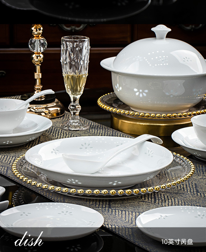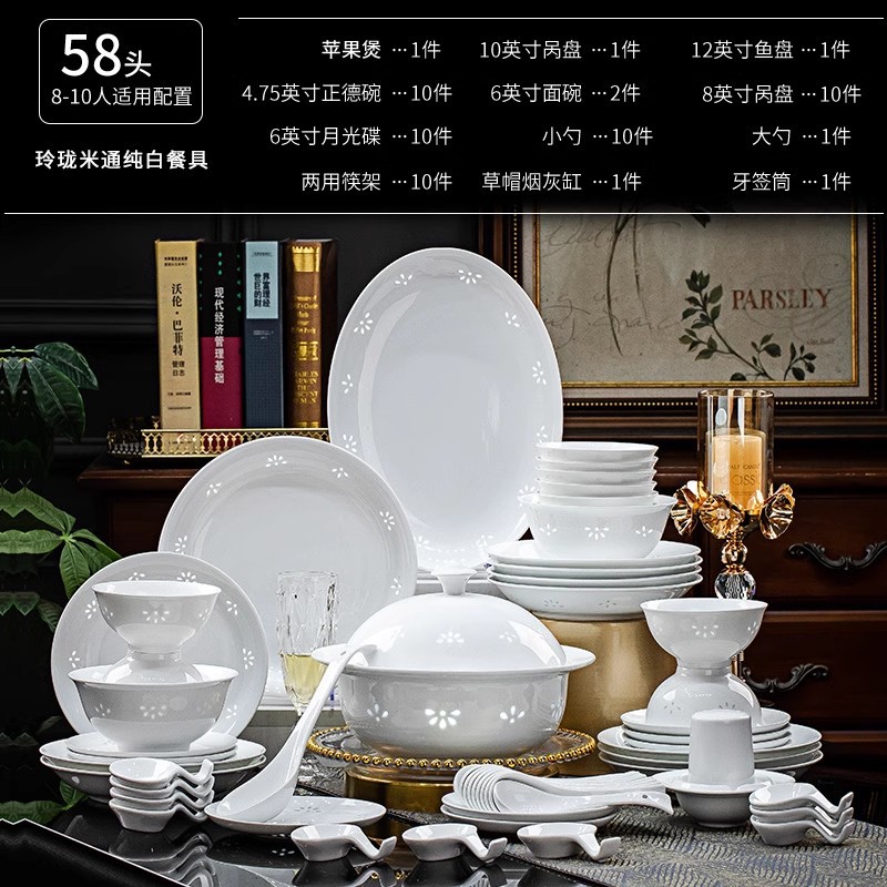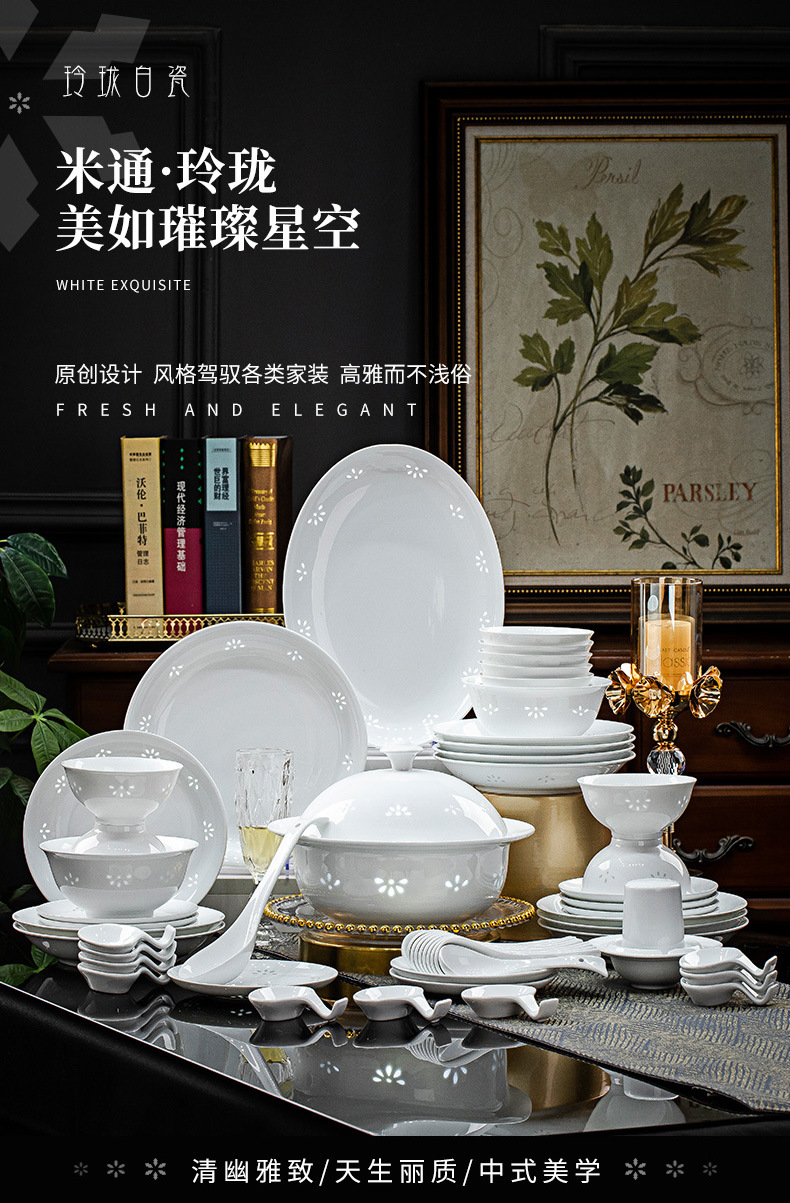 경덕진 순백색 고급 식기, 가정용 고온 고백자 도자기 그릇과 접시, 고급 고급 도자기 식기는 맞춤 제작 가능스토어 가기