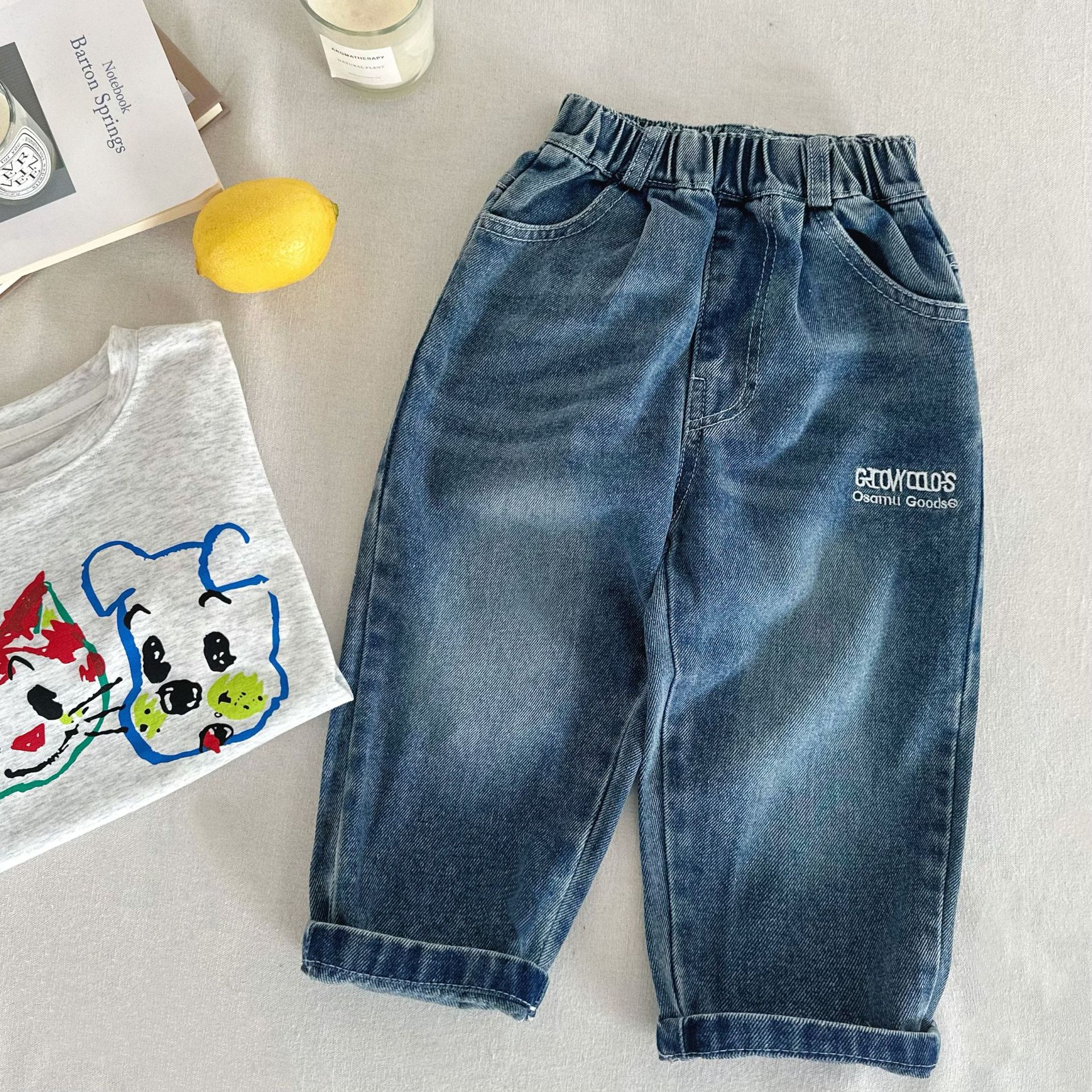 아동용 청바지 2026 봄 신상 남아용 일본풍 트렌디 청바지 아동용 작업복 바지 봄 캐주얼 바지스토어 가기