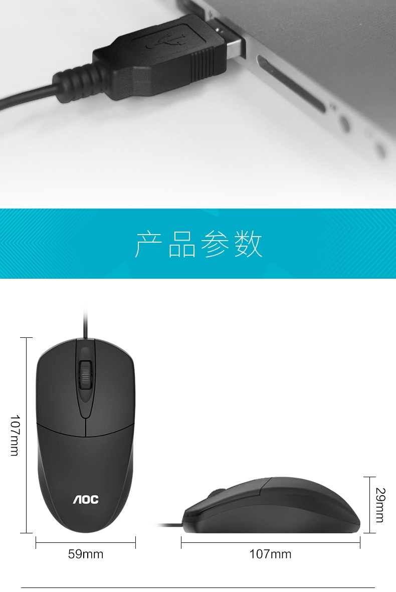 TPV AOC MS121 유선 USB 마우스 홈 오피스 비즈니스 노트북 데스크톱 컴퓨터 마우스