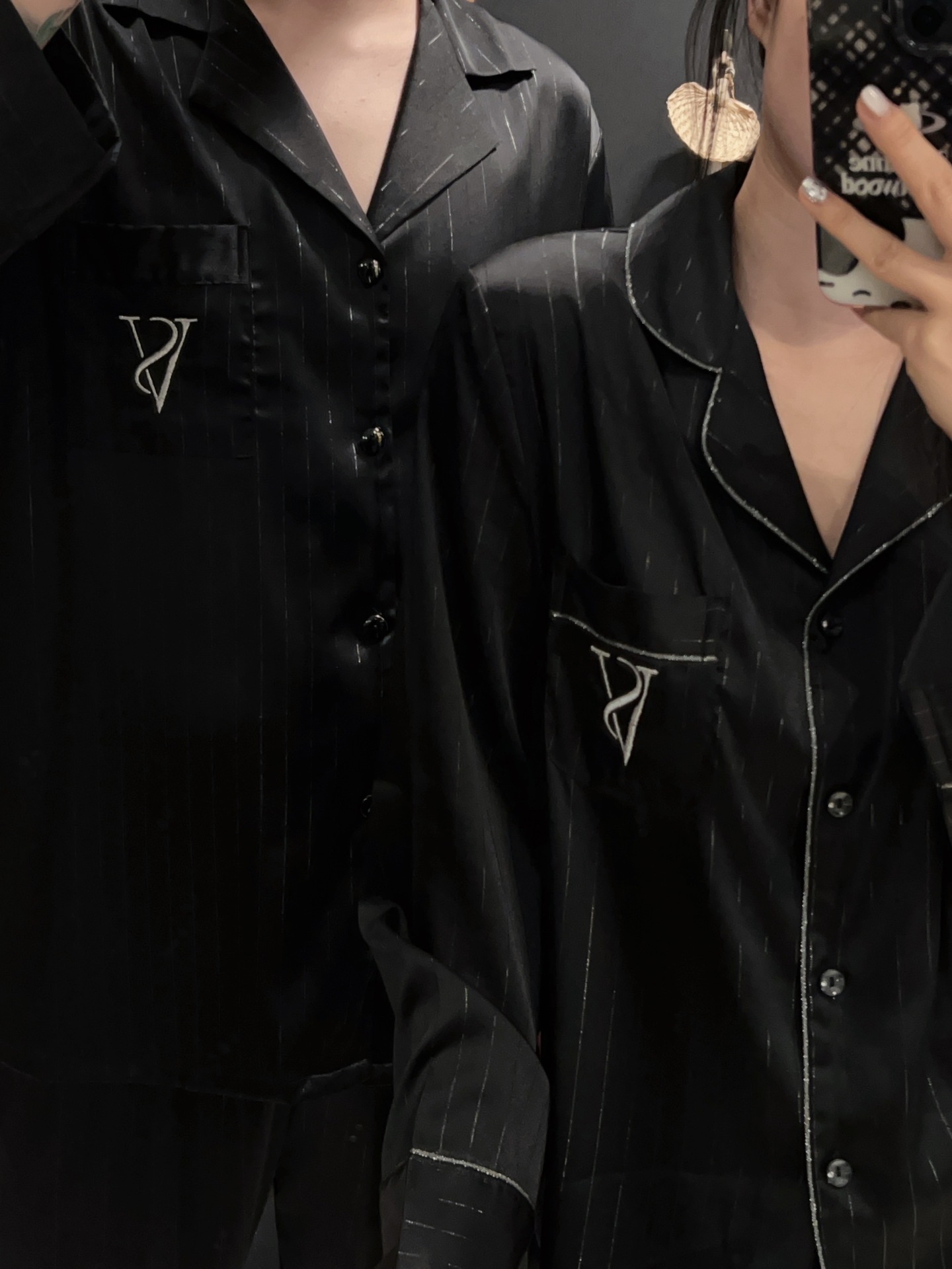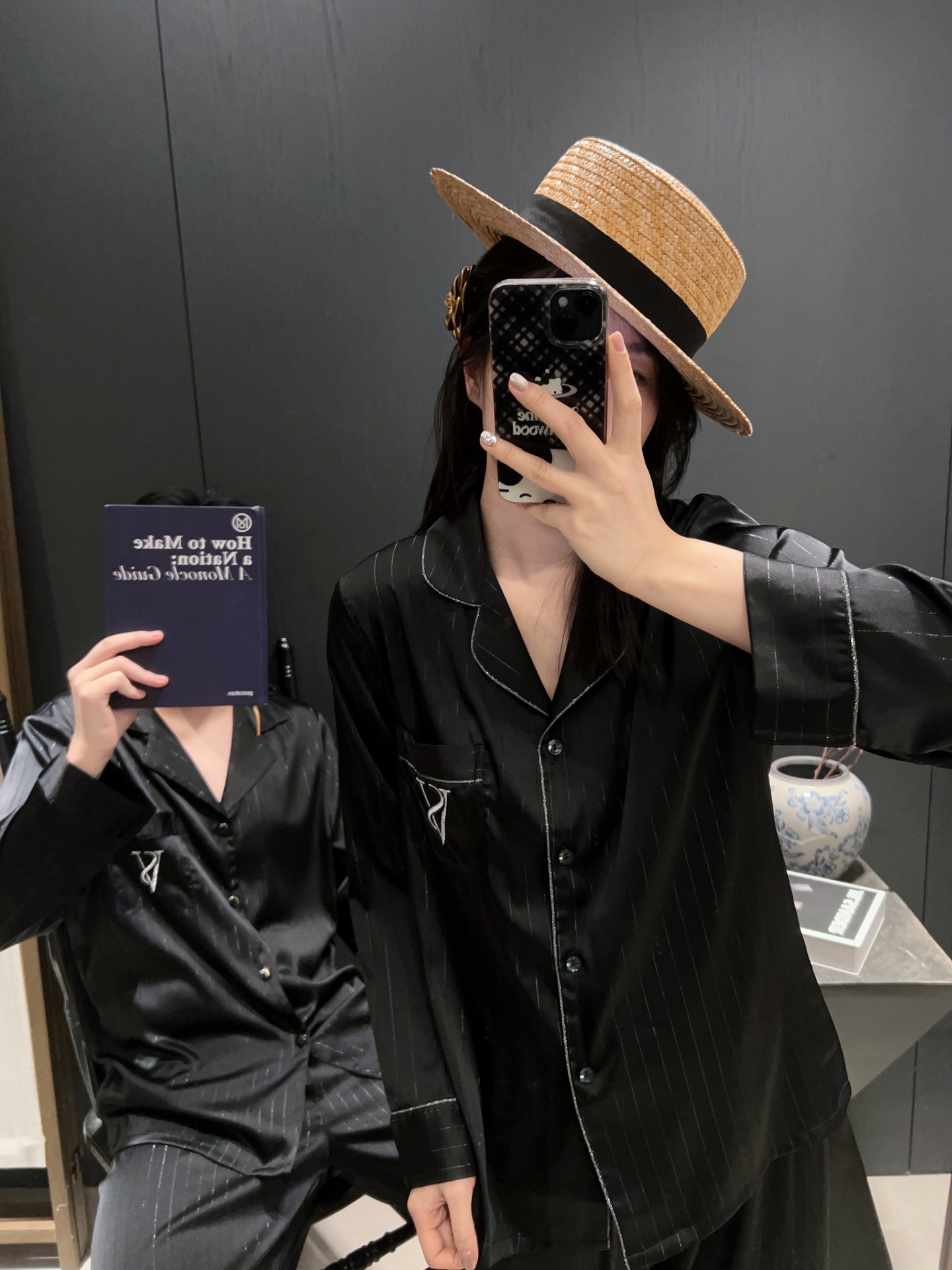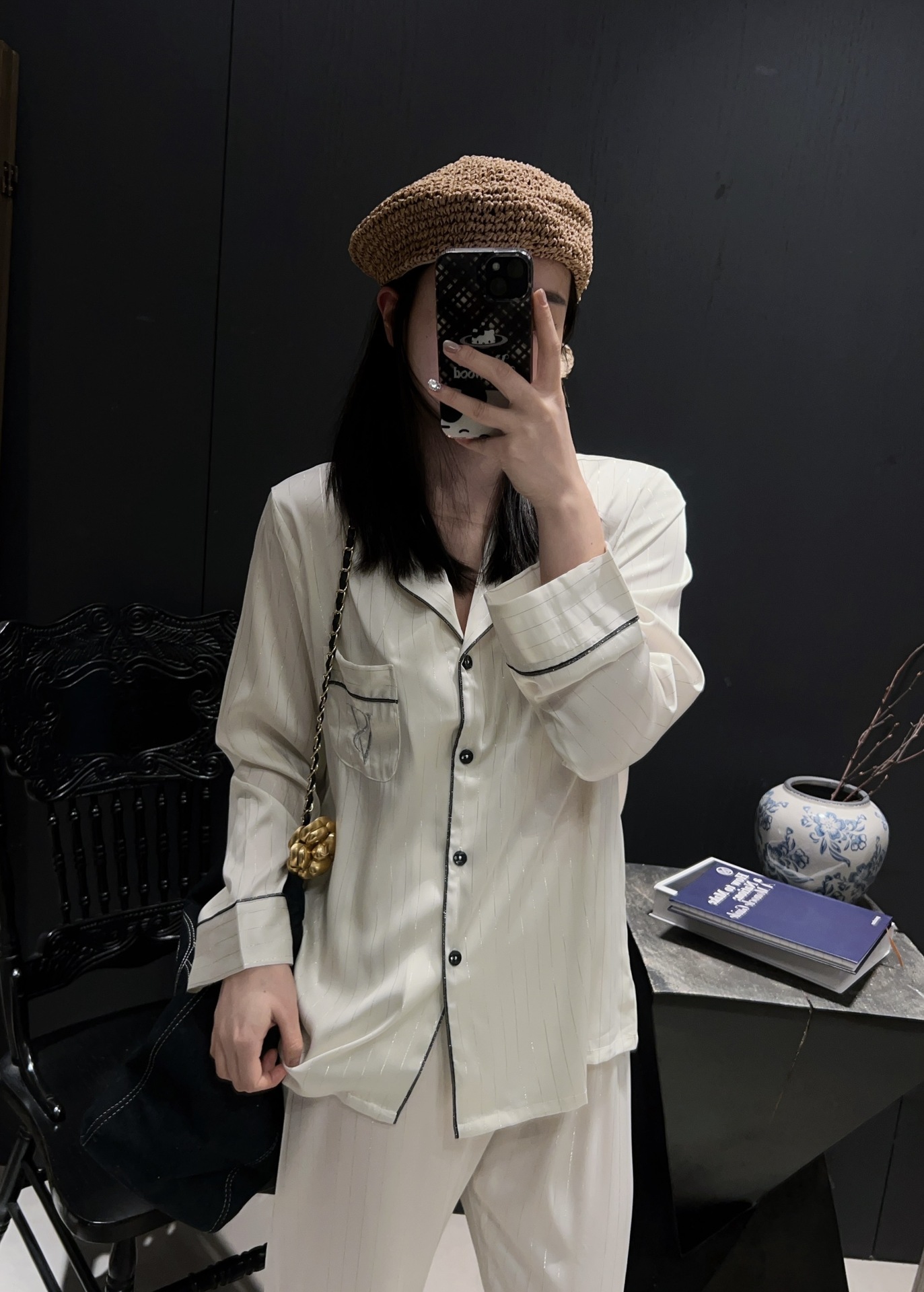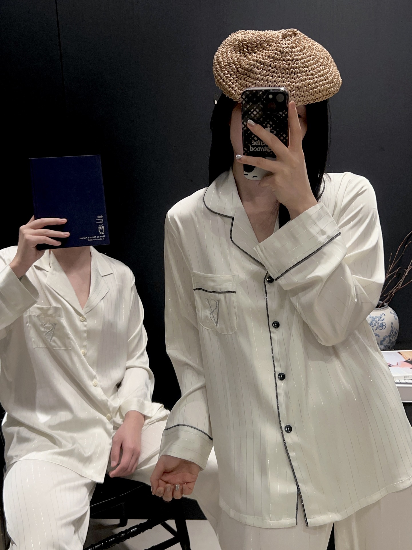 [젠틀 커리어] 2025 년 봄/여름 새 커플 잠옷 패션 하이 엔드 센스 실버 자카드 롱 슬리브 바지스토어 가기