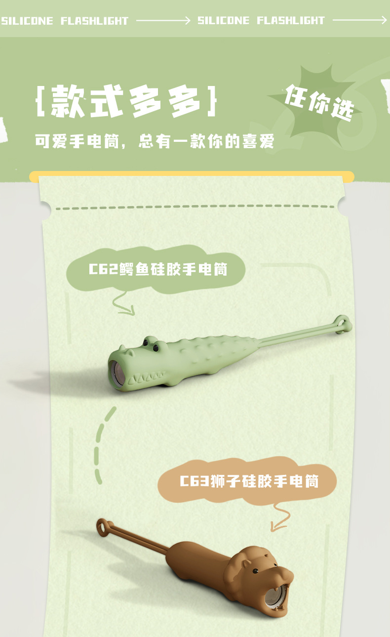 一 C62鳄鱼硅胶手电筒(英文名:Alligator Silicone Flashlight)