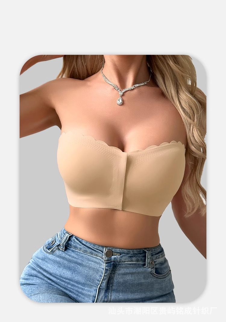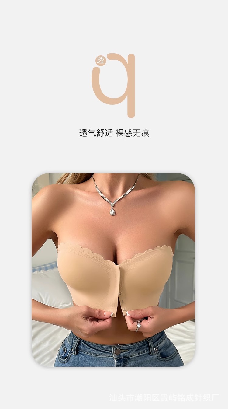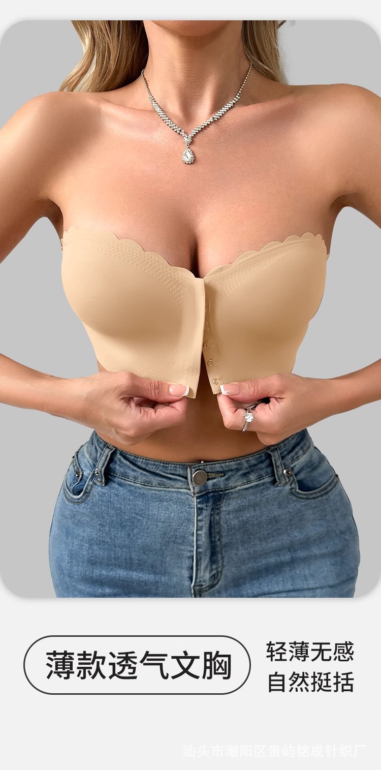 플러스 사이즈 전면 버클 속옷 얇은 푸시 업 작은 가슴 삽입 흉부 보이지 않는 투명 스트랩리스 튜브 탑 원피스 브래지어 여성용스토어 가기