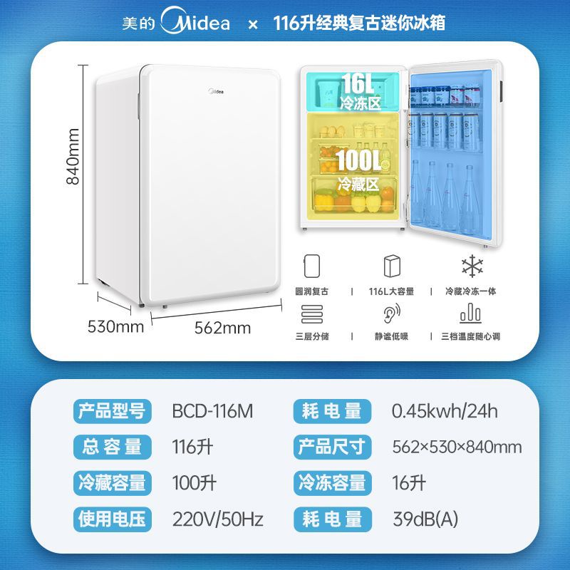Midea 116 리터 홈 거실 사무실 아이스 바 빈티지 냉동 뷰티 메이크업 보존 캐비닛 과일 와인 캐비닛 냉장고