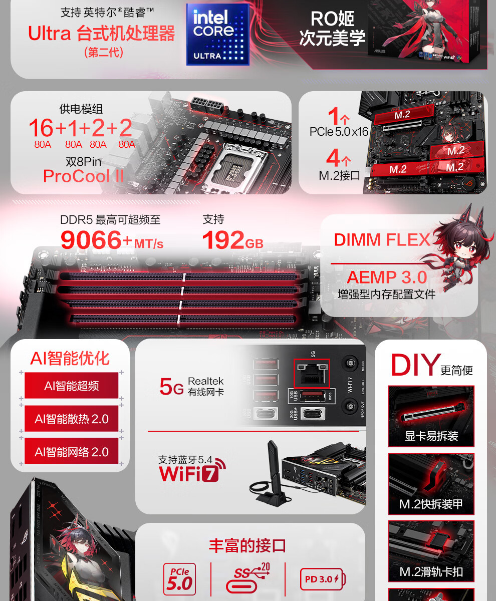 ROG STRIX Z890-H 게임 WIFI S RO Ji 마더 보드 지원 CPU 285K/265K/2