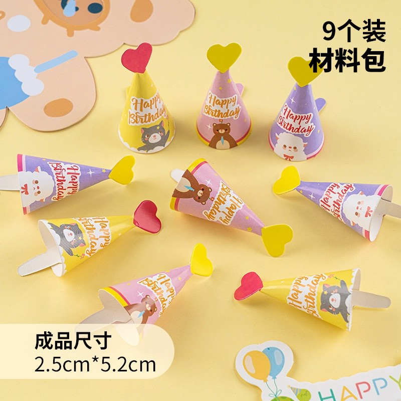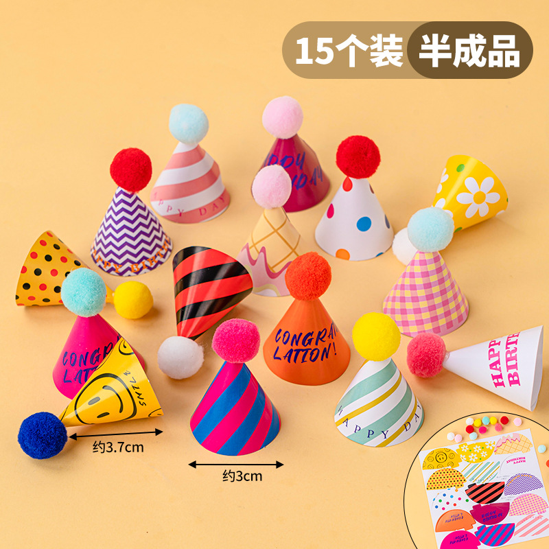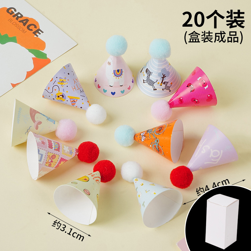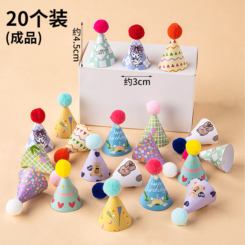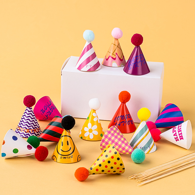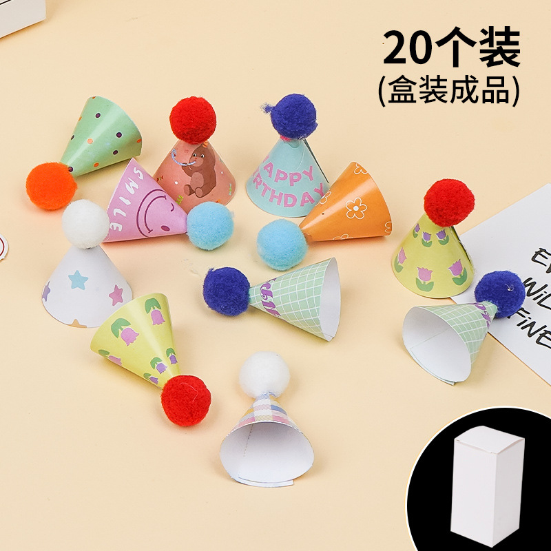 인터넷 연예인 레트로 헤어 볼 작은 모자 생일 케이크 장식 장식 미니 생일 모자 Ins 스타일 베이킹 플러그인스토어 가기