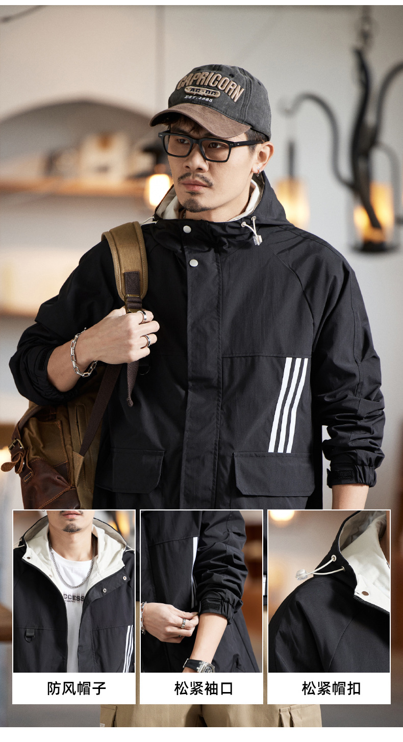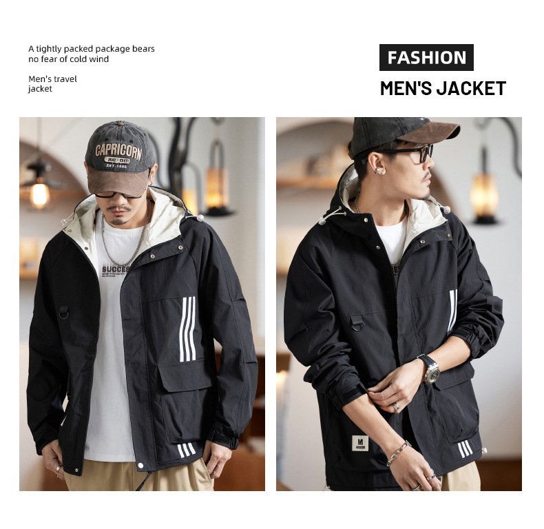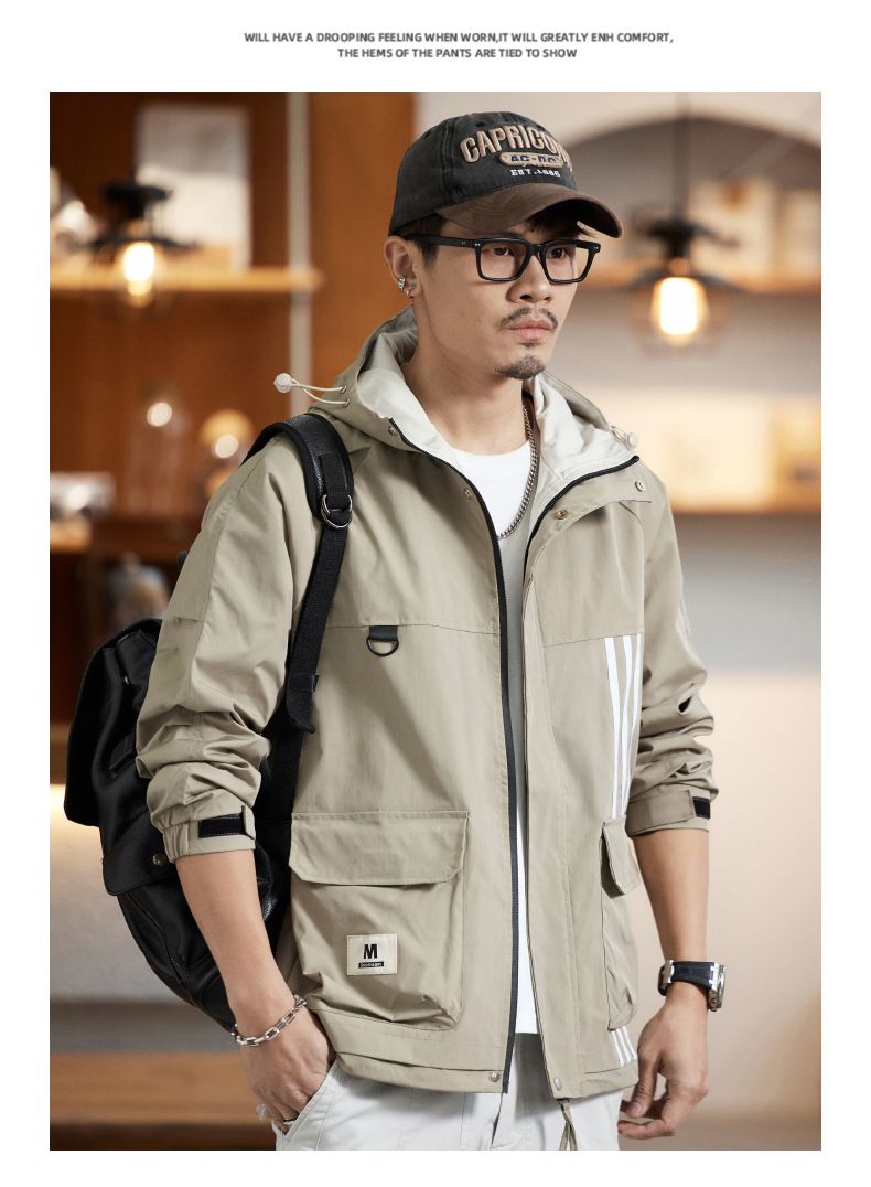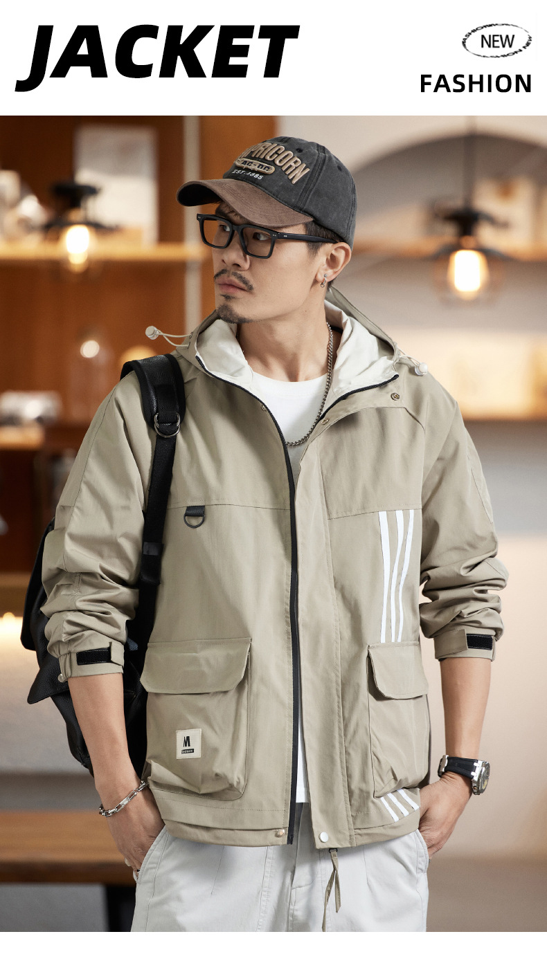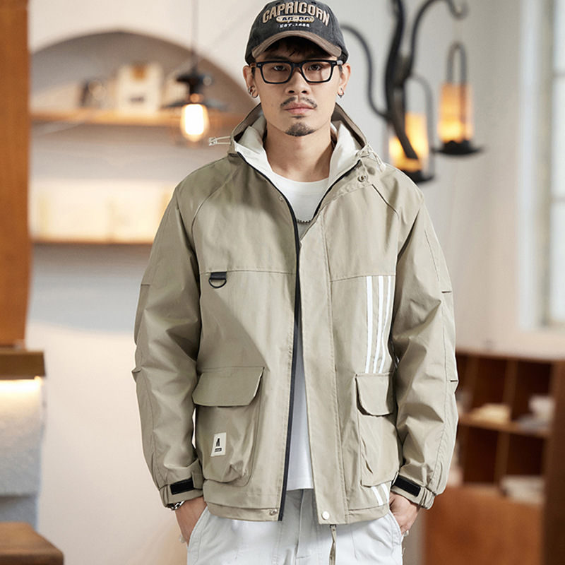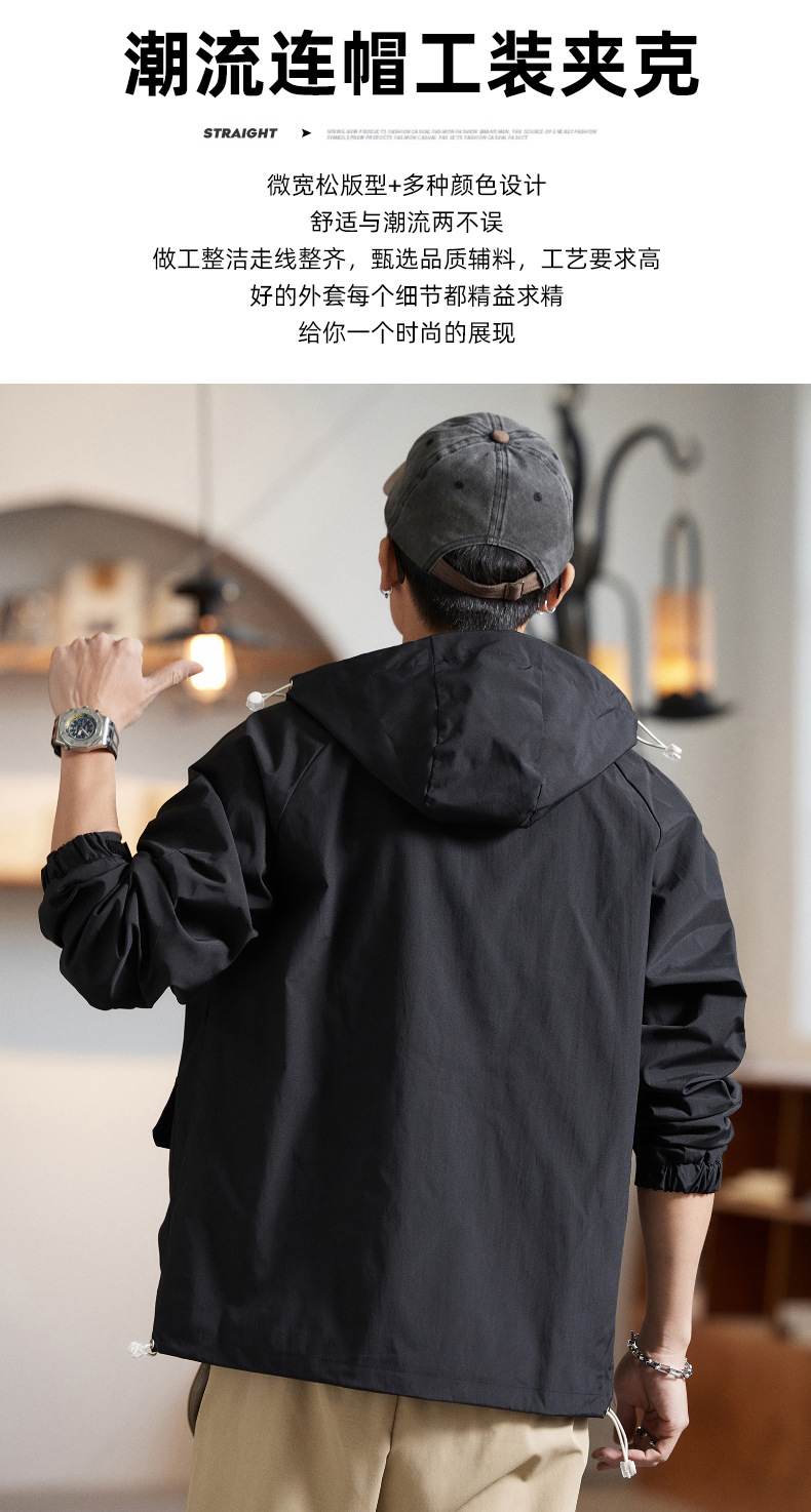 S8828 | 플러스 사이즈 남자의 봄 새로운 도착 의류 후드 재킷 남자의 느슨한 캐주얼 기능성 작업복 재킷스토어 가기