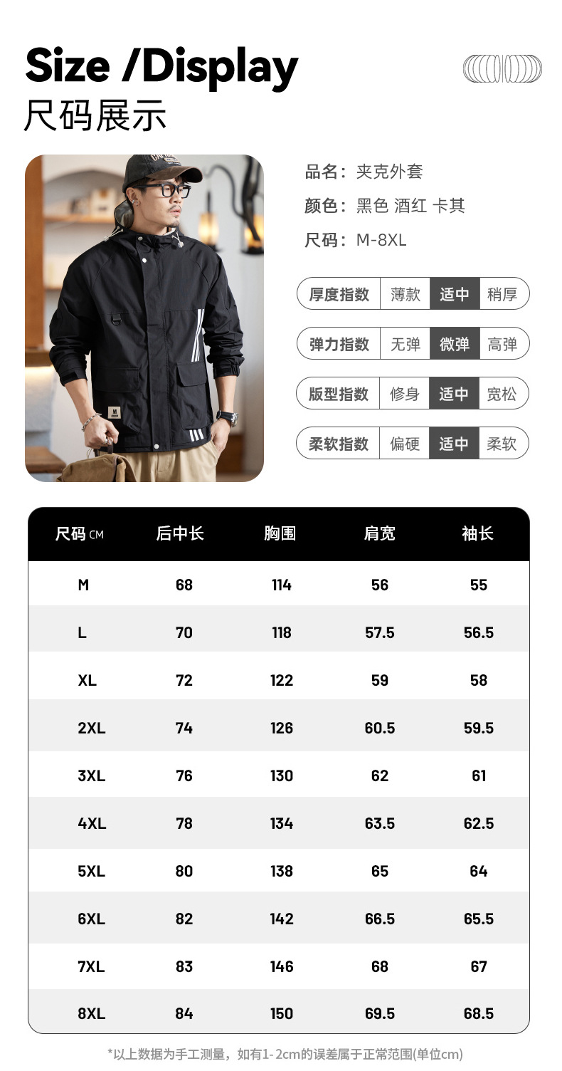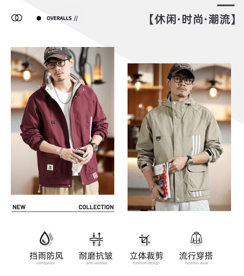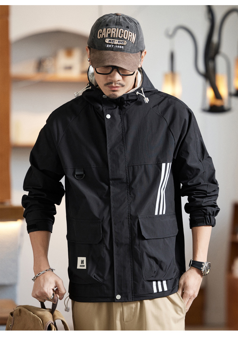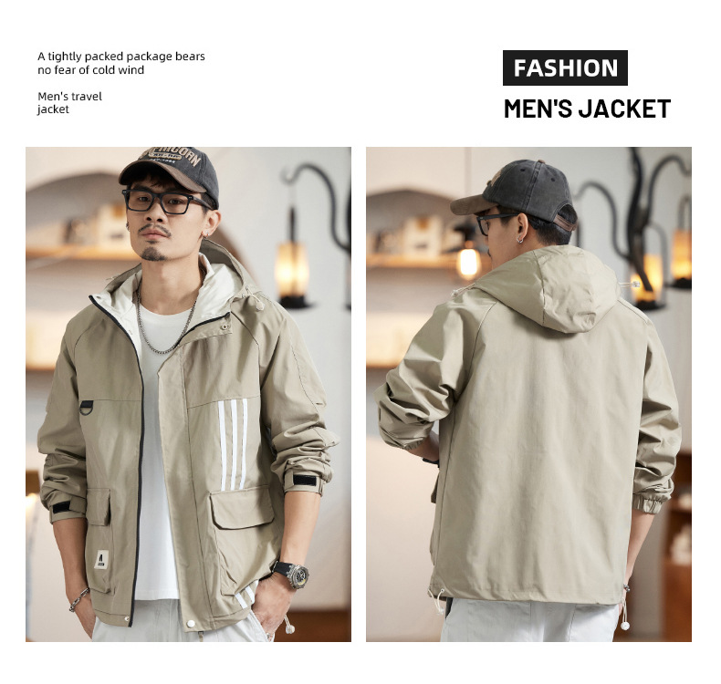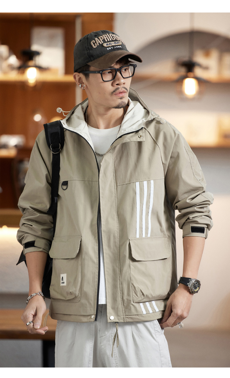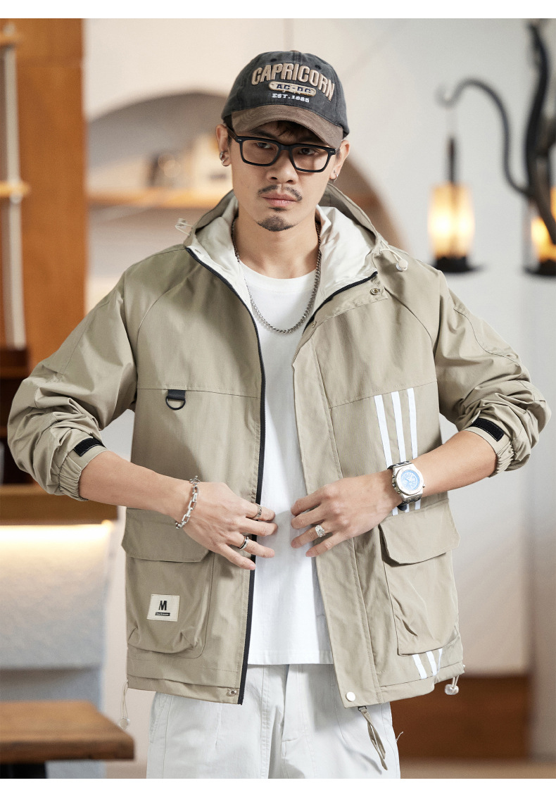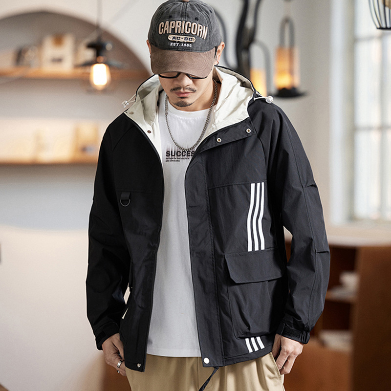 S8828 | 플러스 사이즈 남자의 봄 새로운 도착 의류 후드 재킷 남자의 느슨한 캐주얼 기능성 작업복 재킷스토어 가기