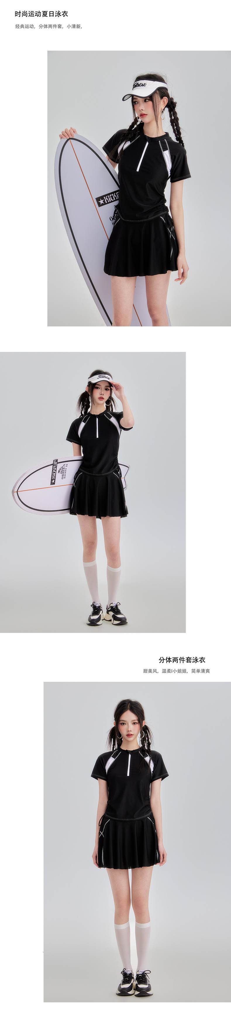 2025 새로운 폴리 에스터 스포츠 스플릿 수영복 패션 테니스 스타일 한국 학생 스커트 복서 수영복스토어 가기