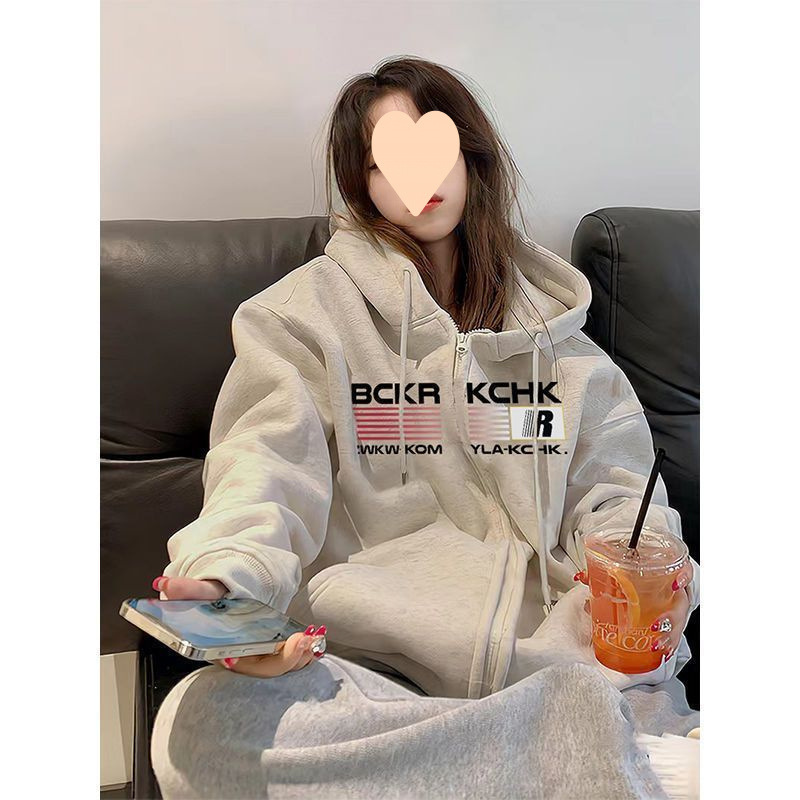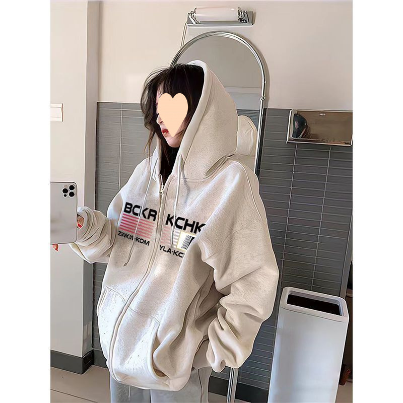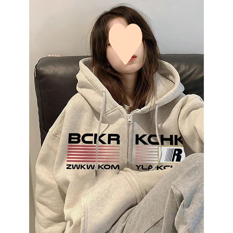 이른 가을 스타일 하이 스트리트 캠퍼스 후드 카디건 여성 지퍼 스웨터 코트 게으른 스타일 국립 패션 미국 스타일 한국 스타일스토어 가기
