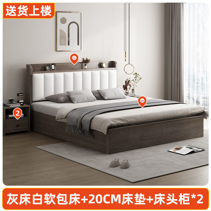단단한 나무 침대 간단한 더블 1.8x2m 메인 싱글 침대 1.5 홈 1.2m 임대 룸 싱글 침대 박스 침대스토어 가기