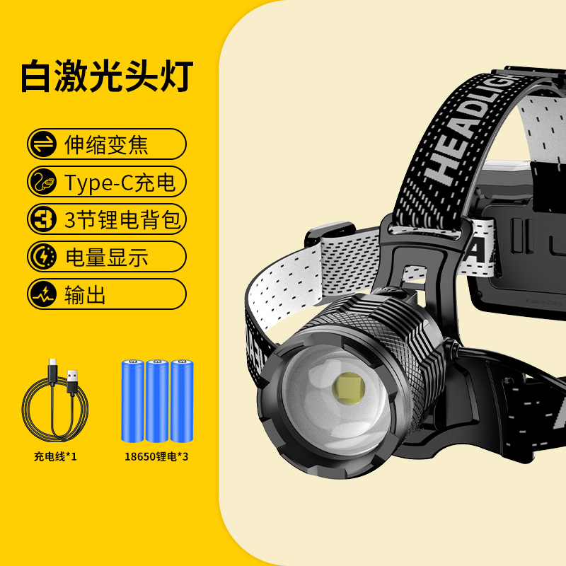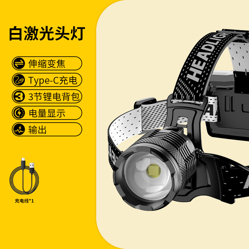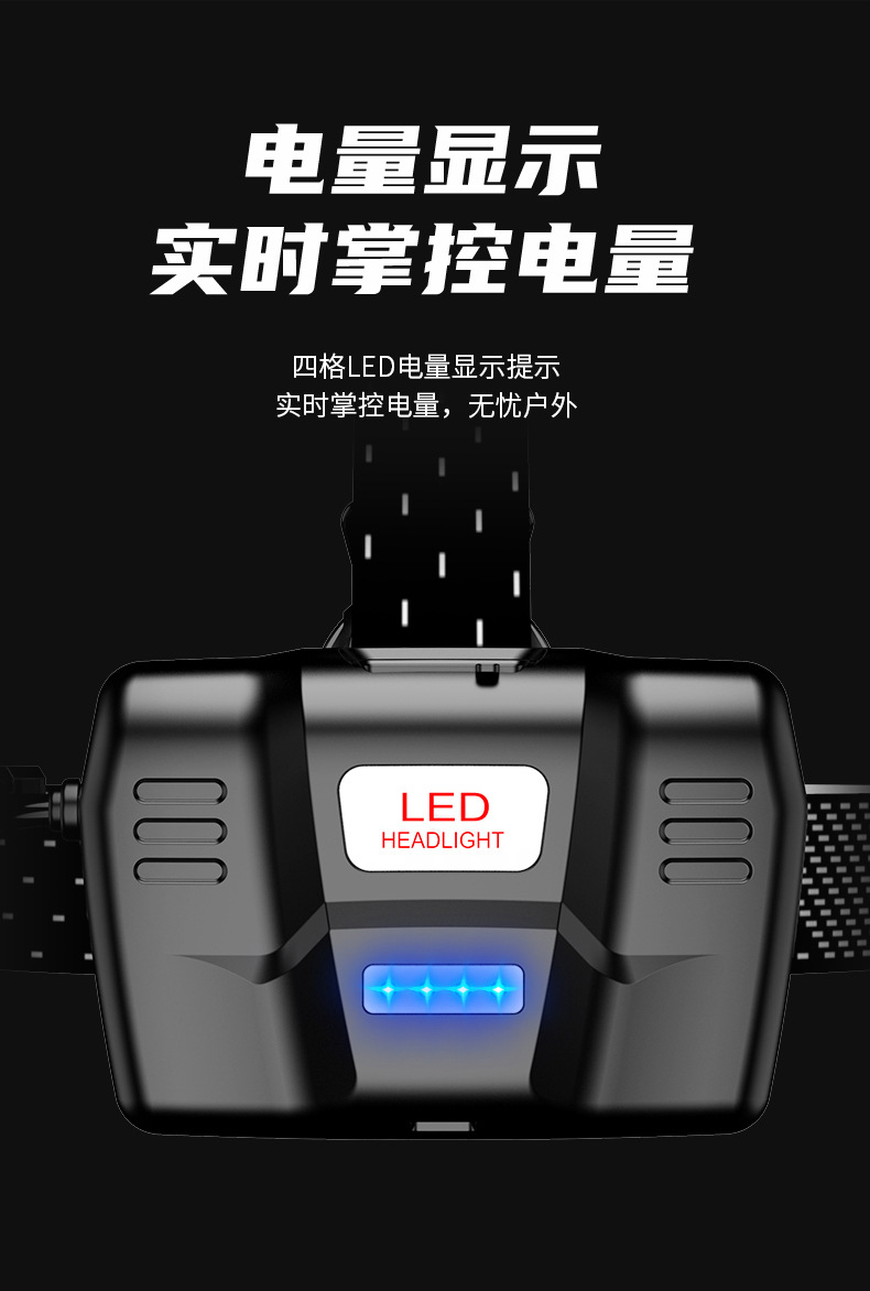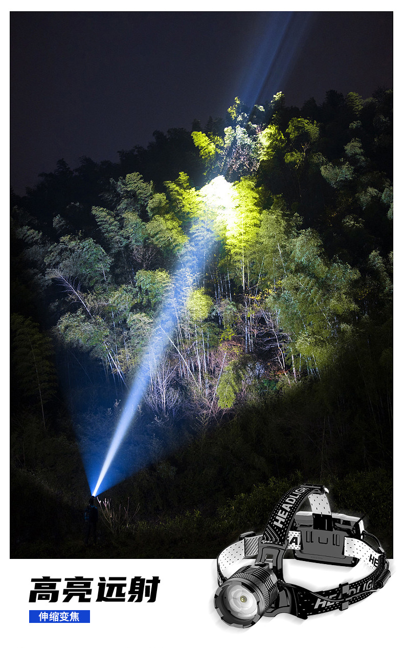 국경 간 새로운 헤드 라이트 강한 장거리 유도 헤드 라이트 Type-C 고속 충전 텔레스코픽 줌 야외 사운드스토어 가기
