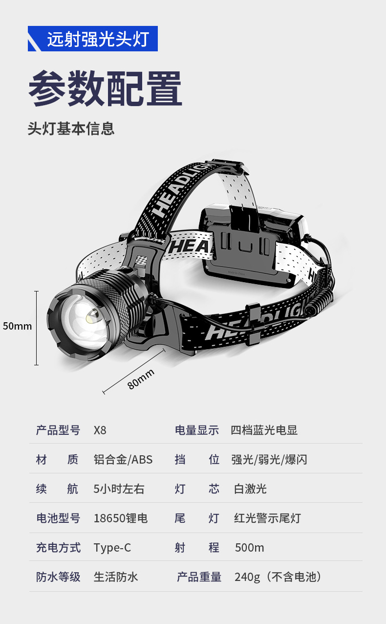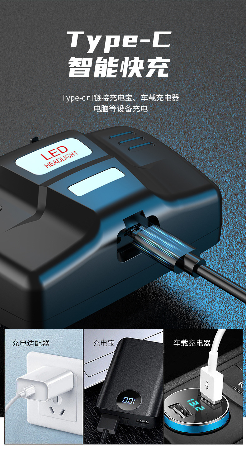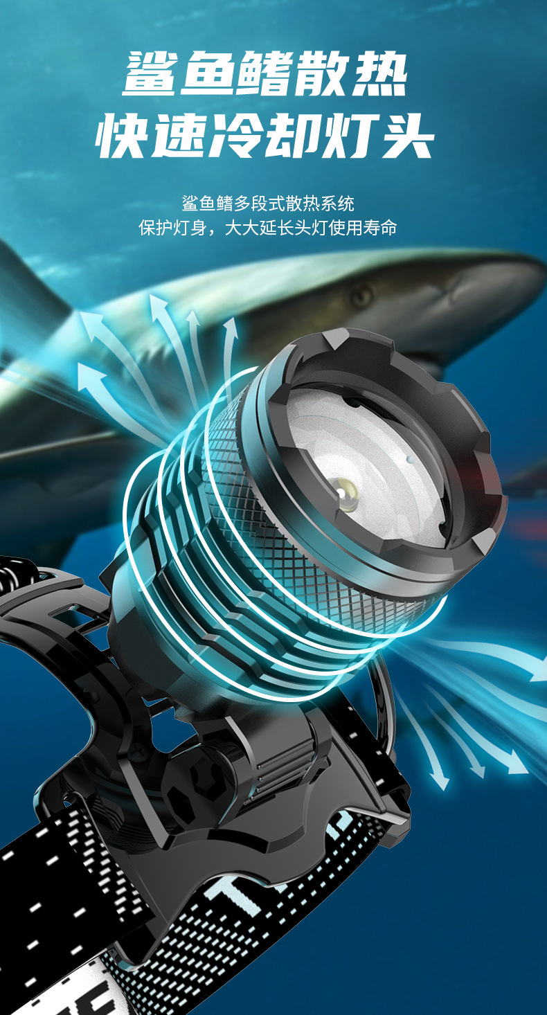 국경 간 새로운 헤드 라이트 강한 장거리 유도 헤드 라이트 Type-C 고속 충전 텔레스코픽 줌 야외 사운드스토어 가기