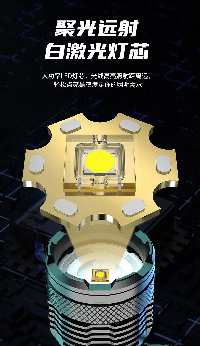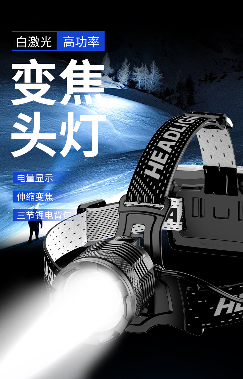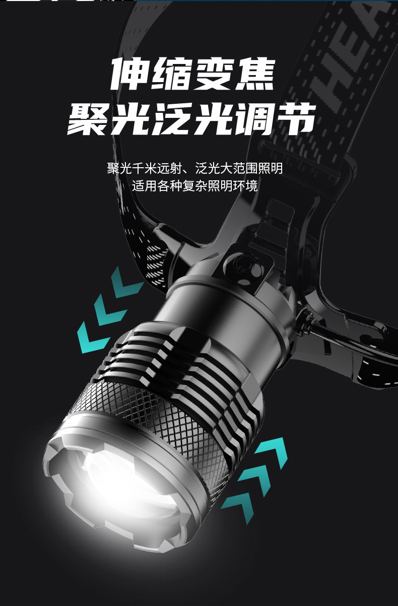 국경 간 새로운 헤드 라이트 강한 장거리 유도 헤드 라이트 Type-C 고속 충전 텔레스코픽 줌 야외 사운드