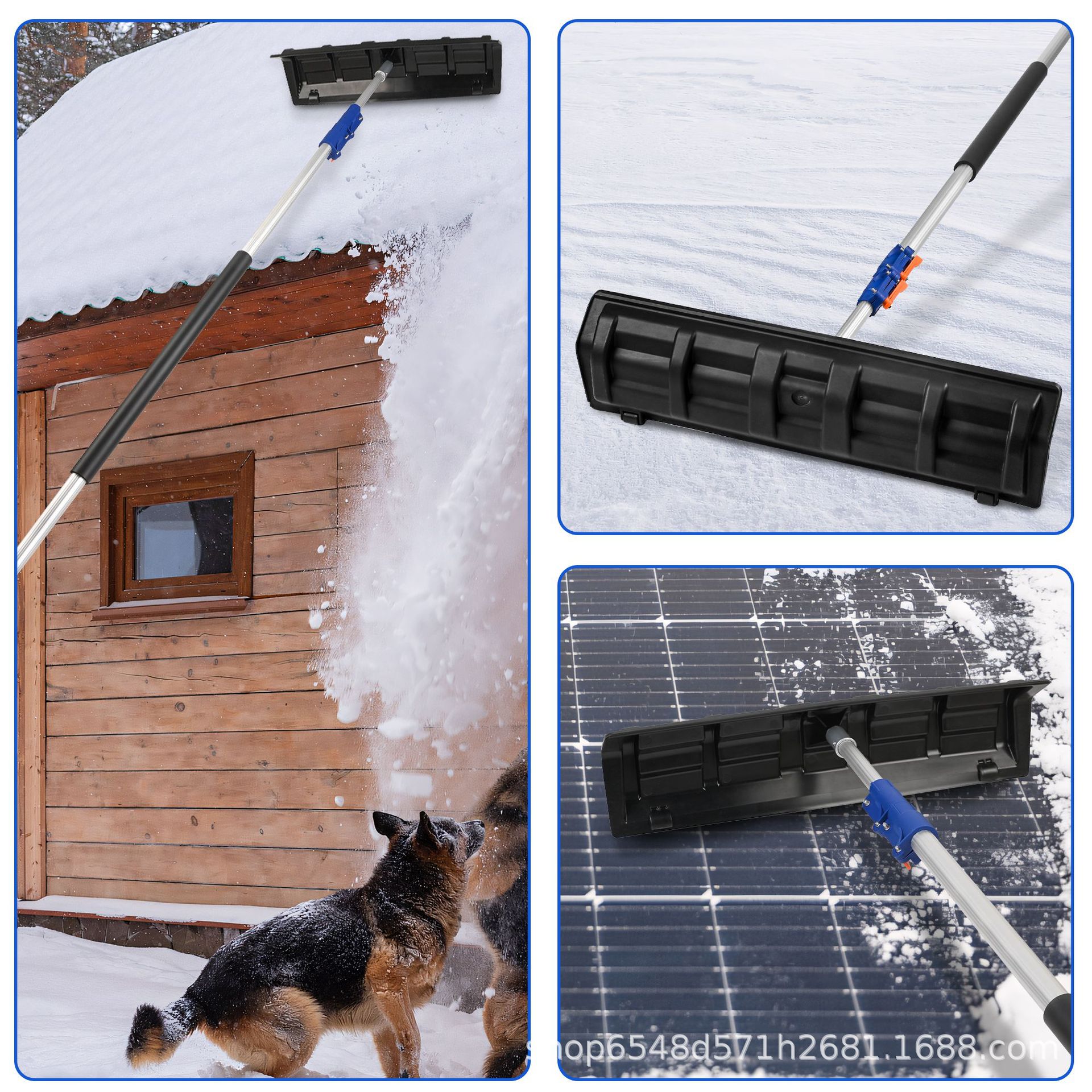국경 간 인기 판매 알루미늄 텔레스코픽 막대 긴 손잡이 텔레스코픽 막대가있는 스노우 삽 태양 전지 패널 제설 도구