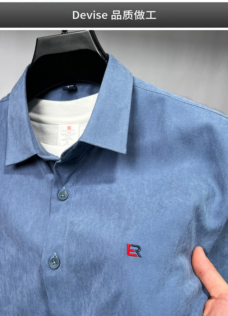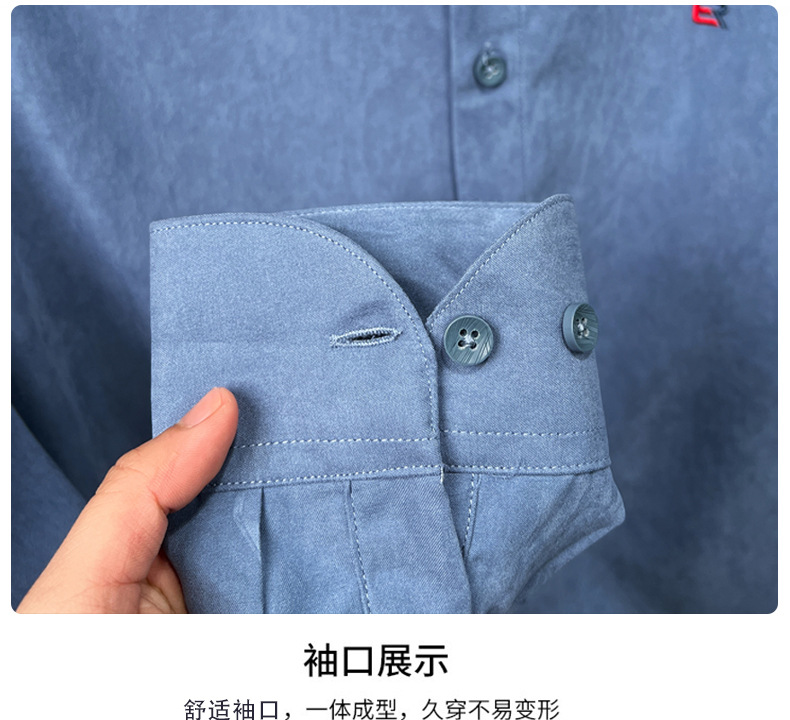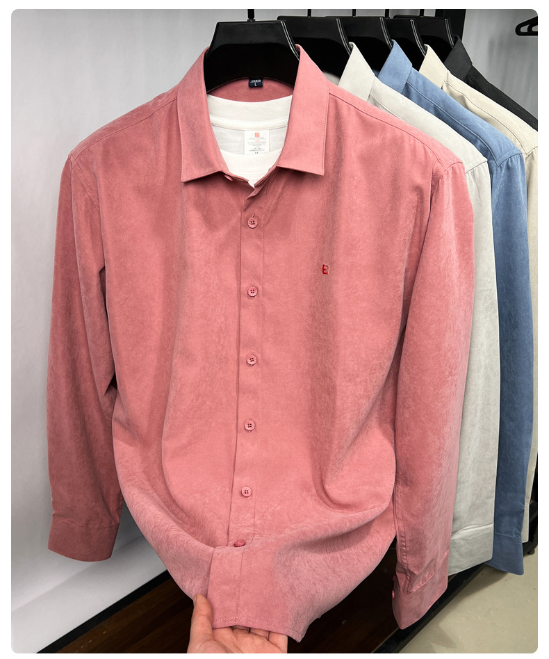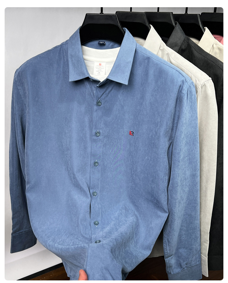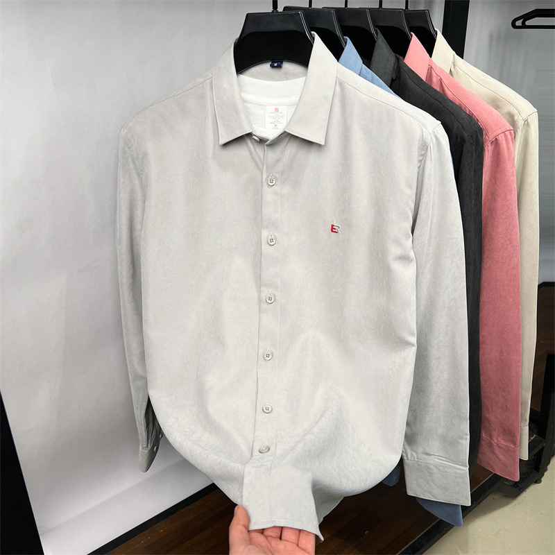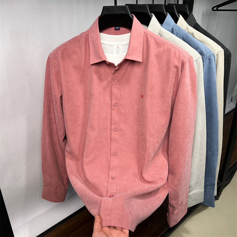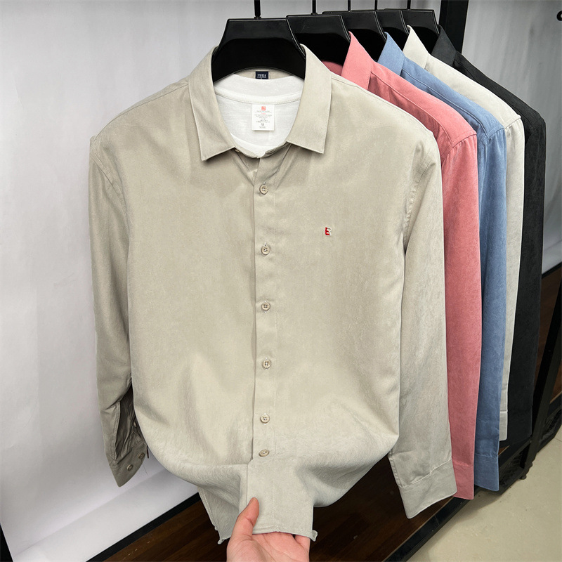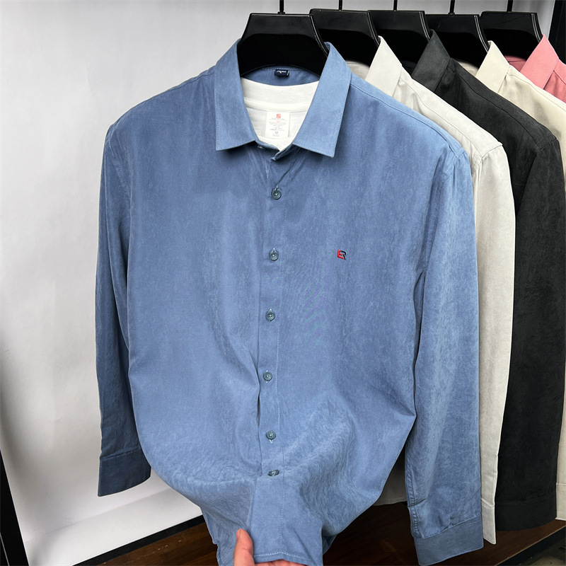 2025 봄과 가을 새로운 자수 스웨이드 셔츠 남자 긴팔 중년 비즈니스 캐주얼 솔리드 컬러 올 매치 남자 셔츠스토어 가기