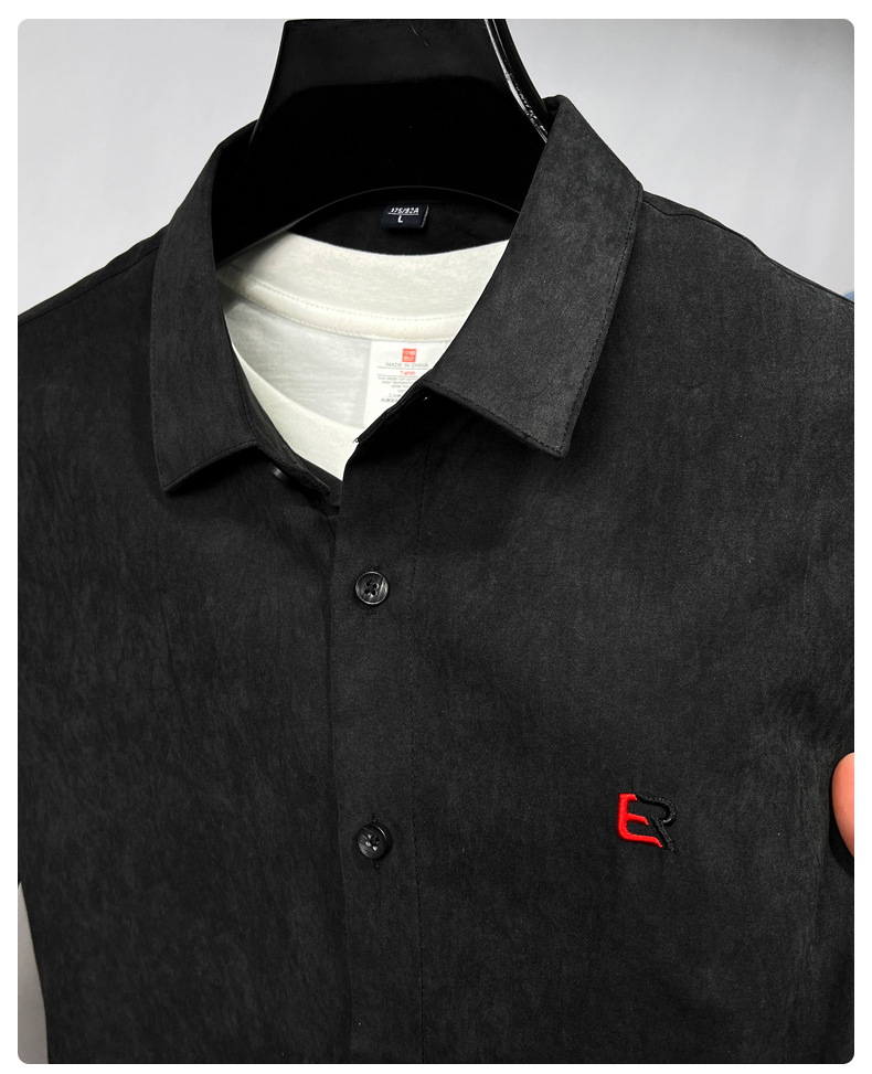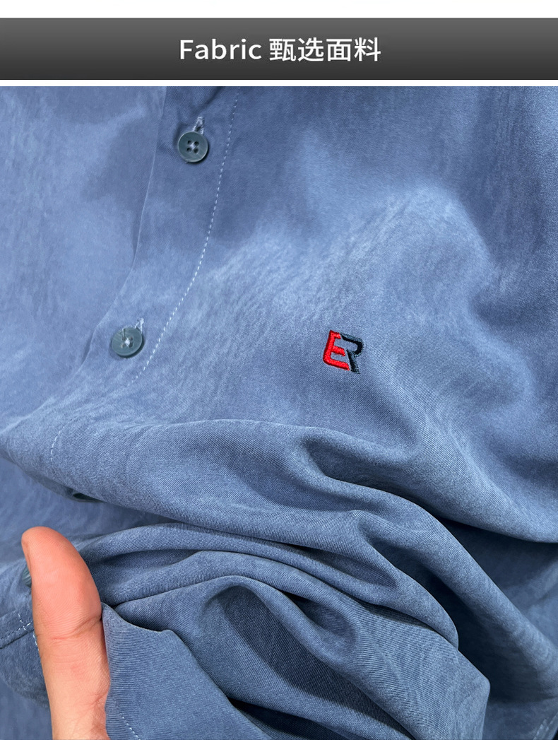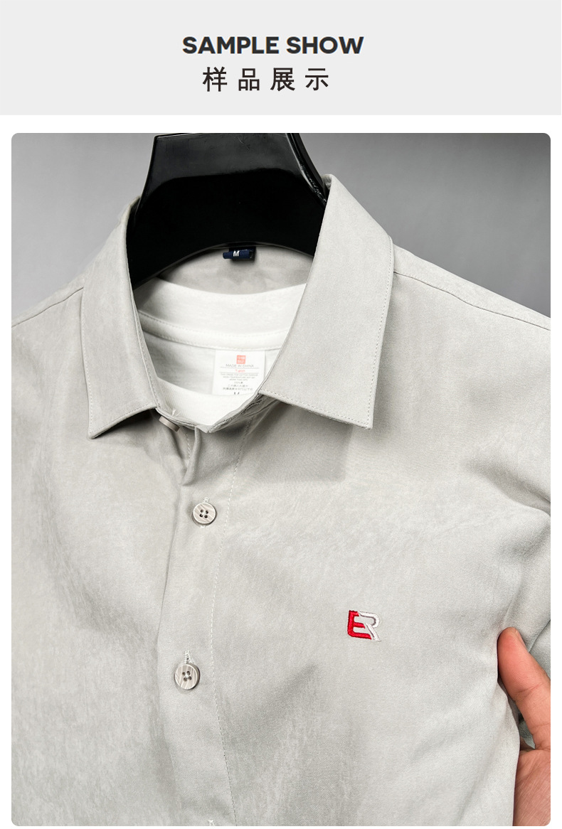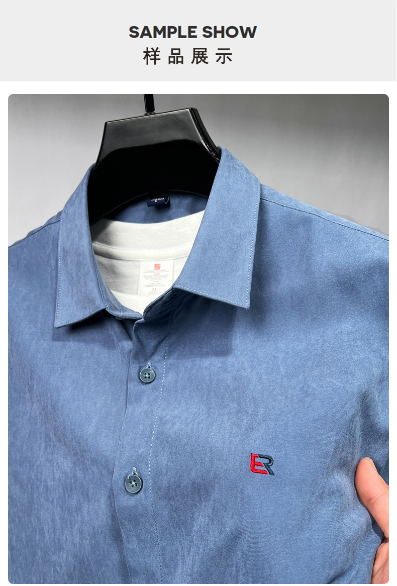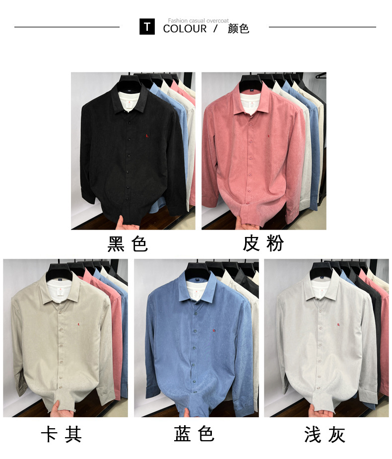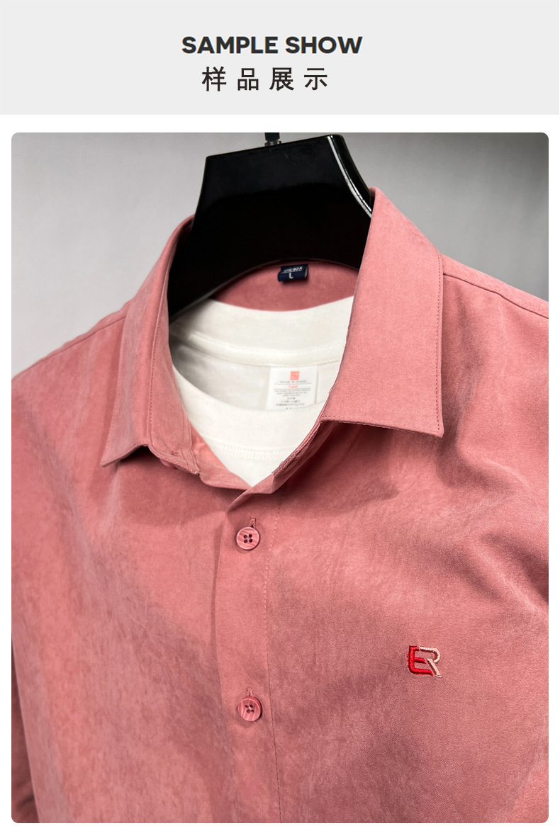 2025 봄과 가을 새로운 자수 스웨이드 셔츠 남자 긴팔 중년 비즈니스 캐주얼 솔리드 컬러 올 매치 남자 셔츠스토어 가기