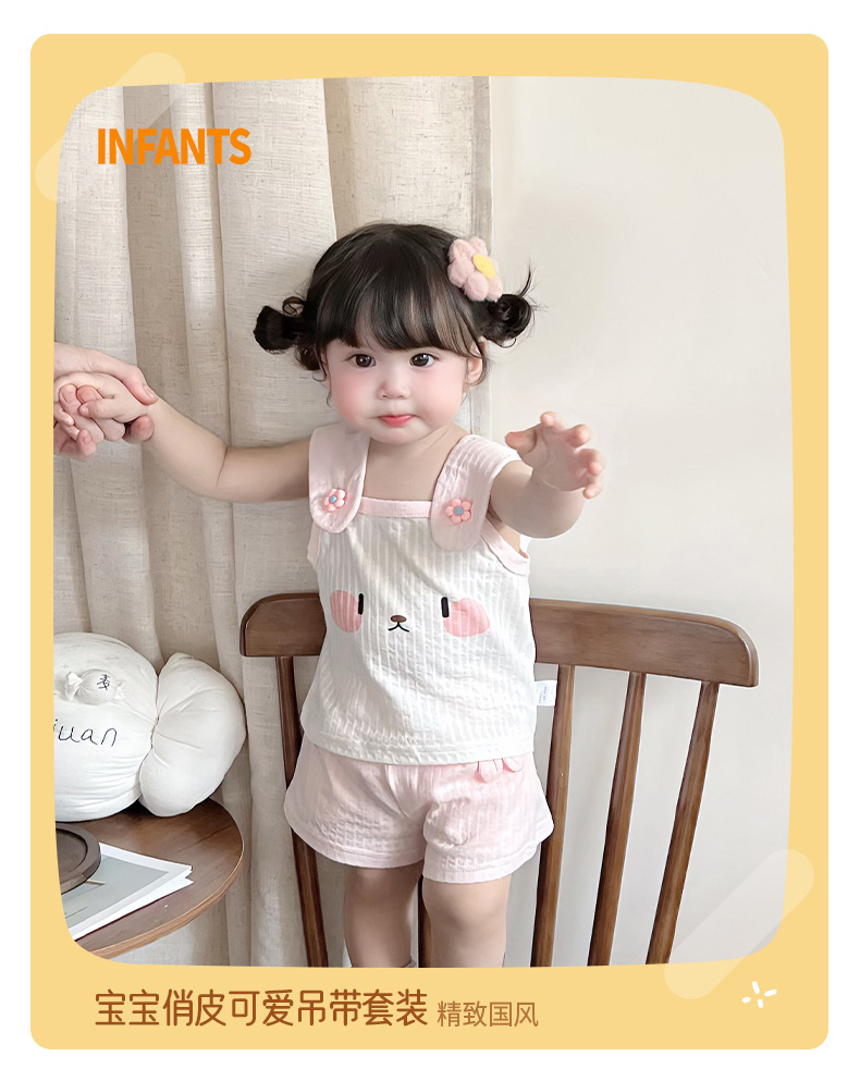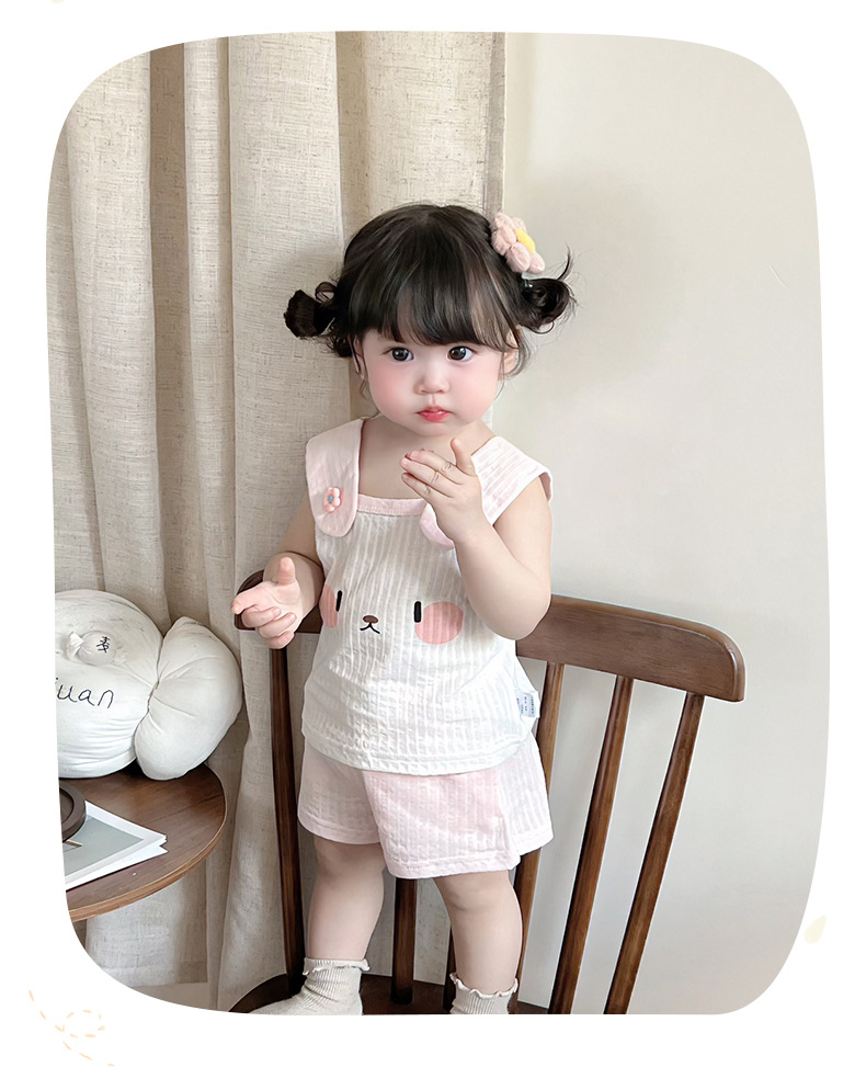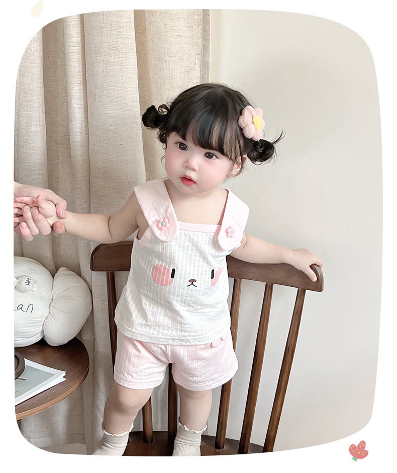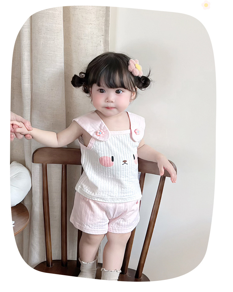 아기 여름 민소매 세트 어린이 달콤한 얇은 슬링 투피스 세트 3670 아기 소녀 귀여운 반바지 세트스토어 가기