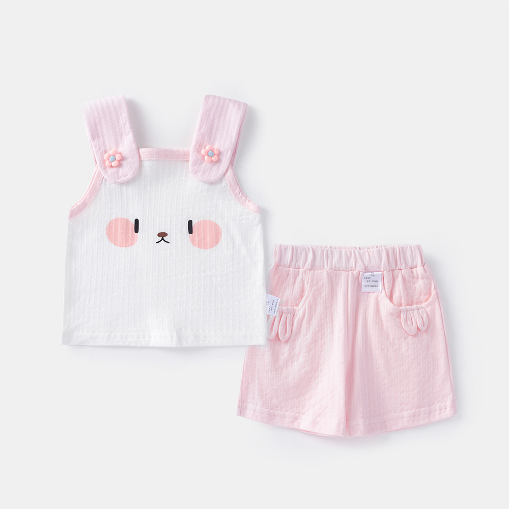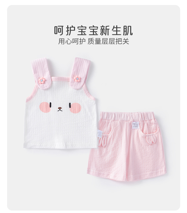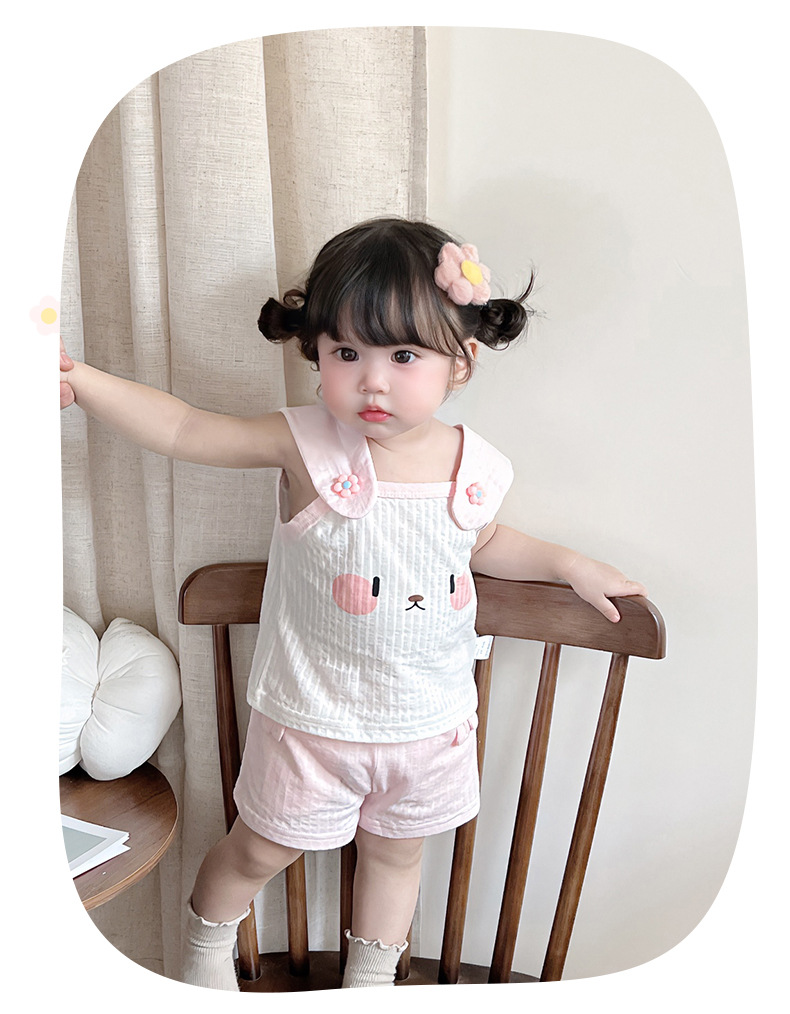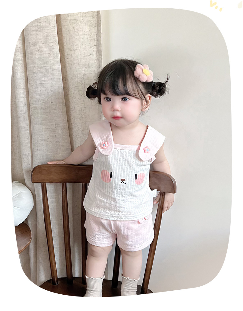 아기 여름 민소매 세트 어린이 달콤한 얇은 슬링 투피스 세트 3670 아기 소녀 귀여운 반바지 세트스토어 가기