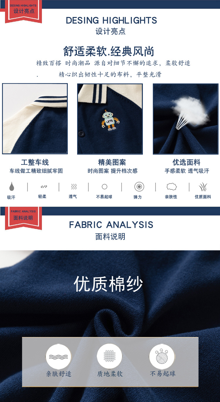 봄 새 아동복 소년 올가미 싱글 브레스트 스웨터 한국 스타일 아기 만화 자수 싱글 레이어 코튼 코트 트렌디스토어 가기