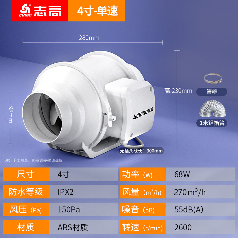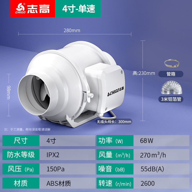 • 4inch 단일 속도 - 흰색 [배관 Φ100-110mm] + 3m 알루미늄 호일 튜브