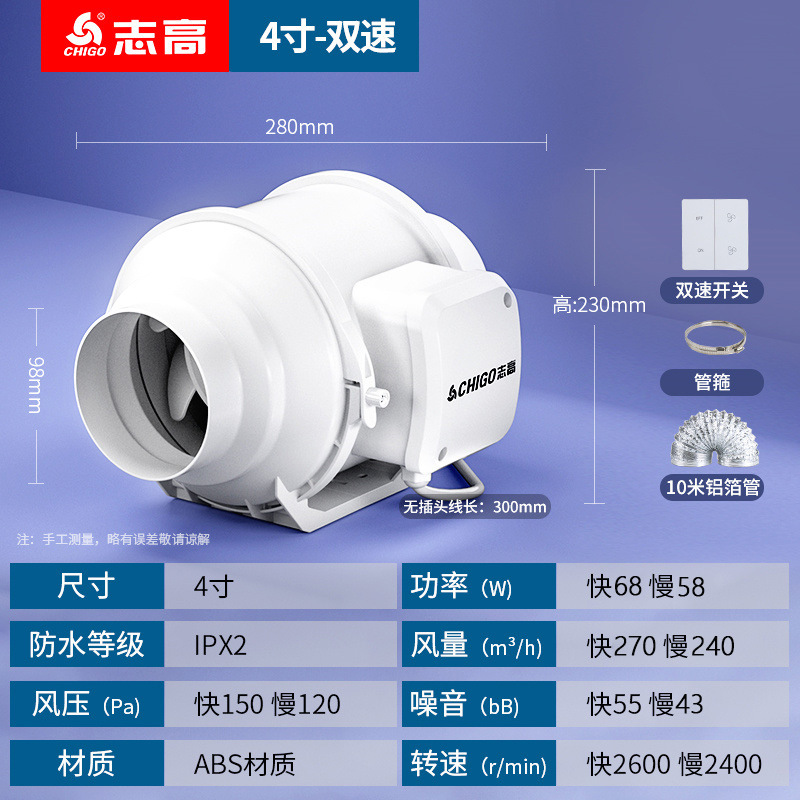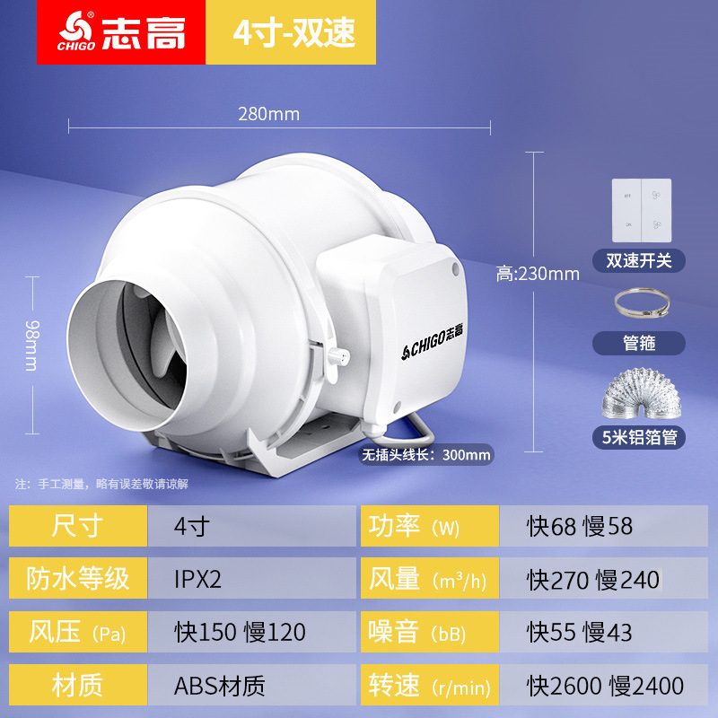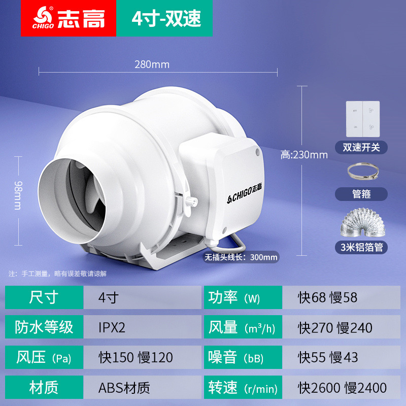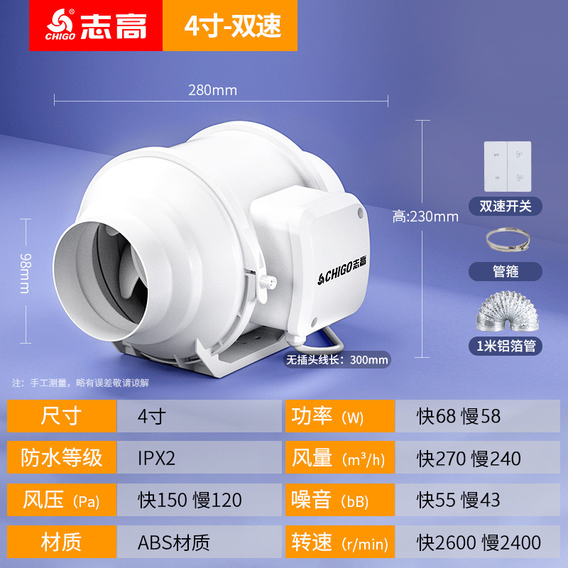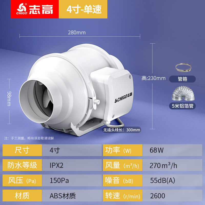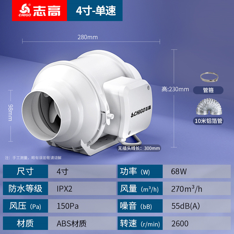 • 4inch 단일 속도 - 흰색 [배관 Φ100-110mm] + 10m 알루미늄 호일 튜브