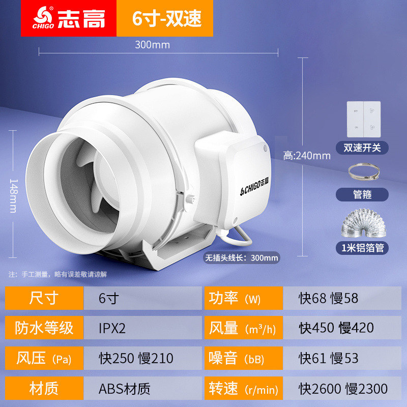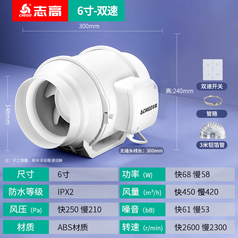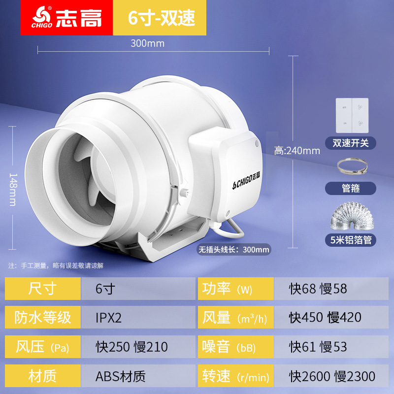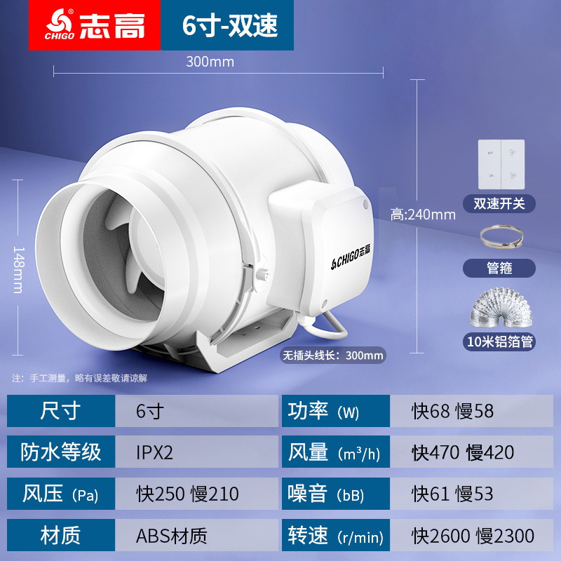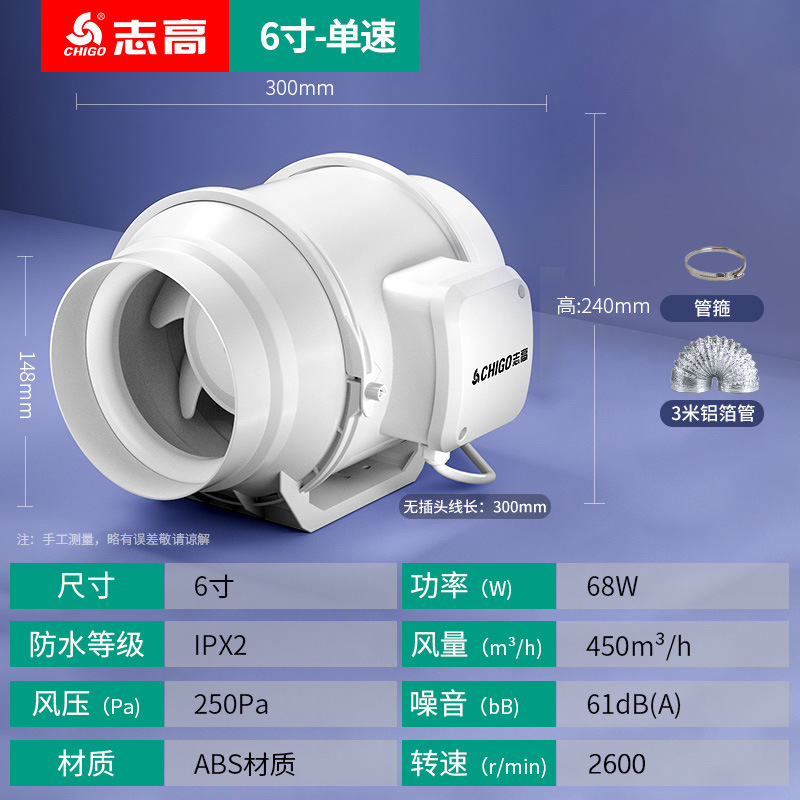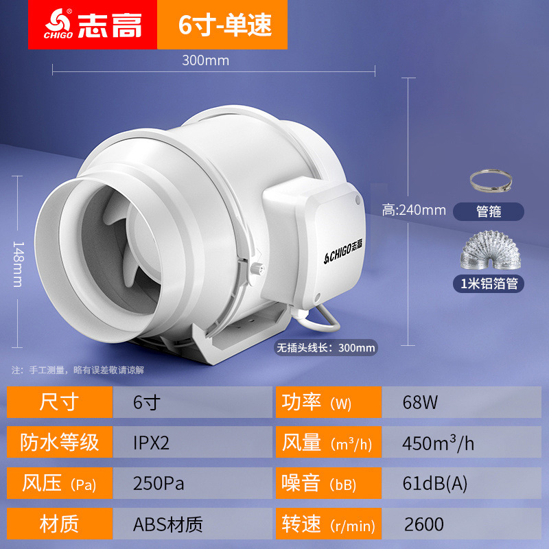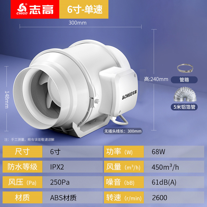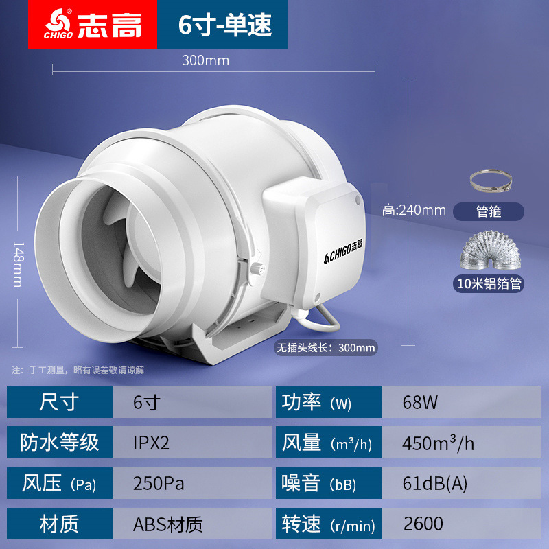 • 6inch 단일 속도 - 흰색 [배관 Φ150-160mm] + 10m 알루미늄 호일 튜브