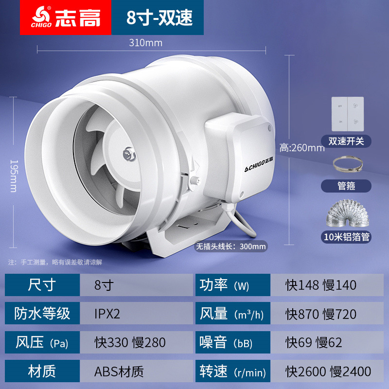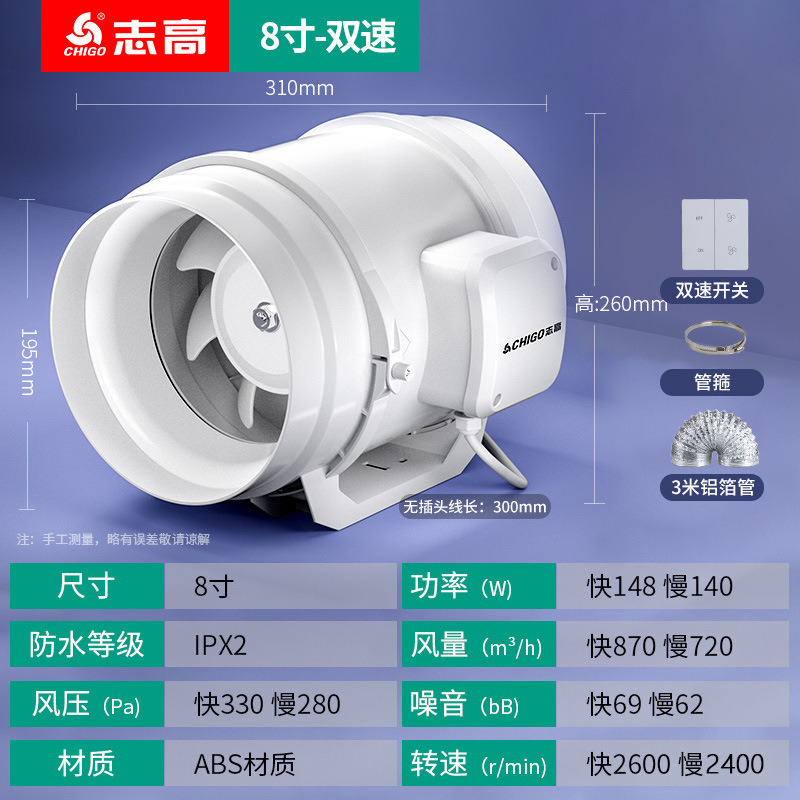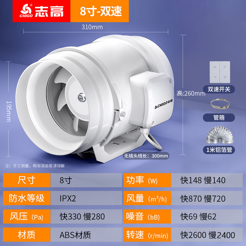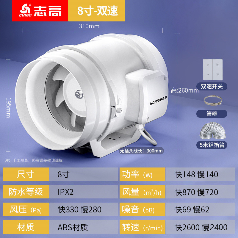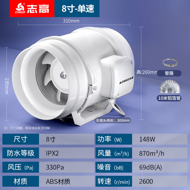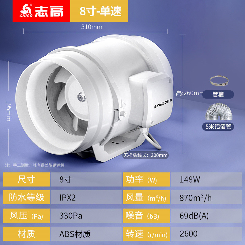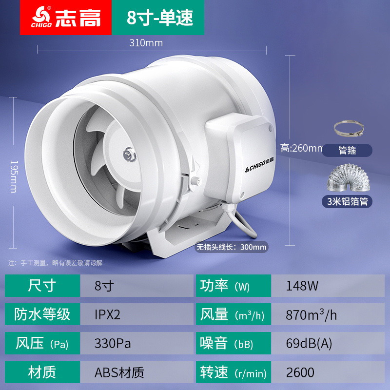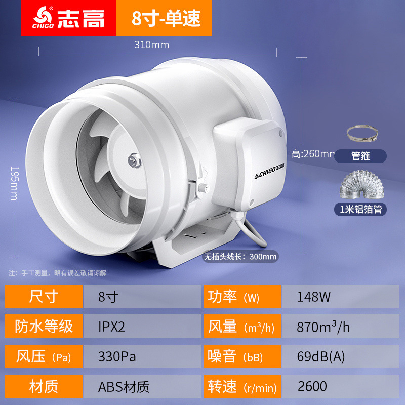 • 8inch 단일 속도 - 흰색 [배관 Φ200-210mm] + 5m 알루미늄 호일 튜브