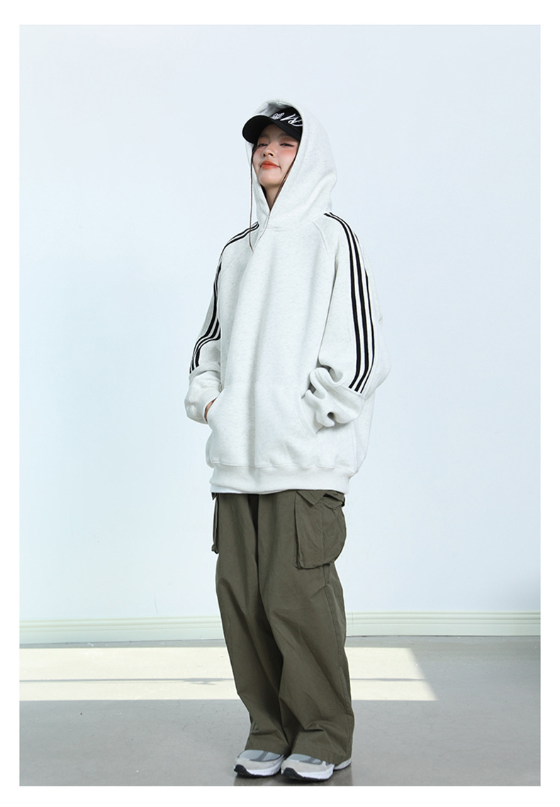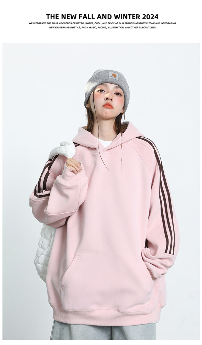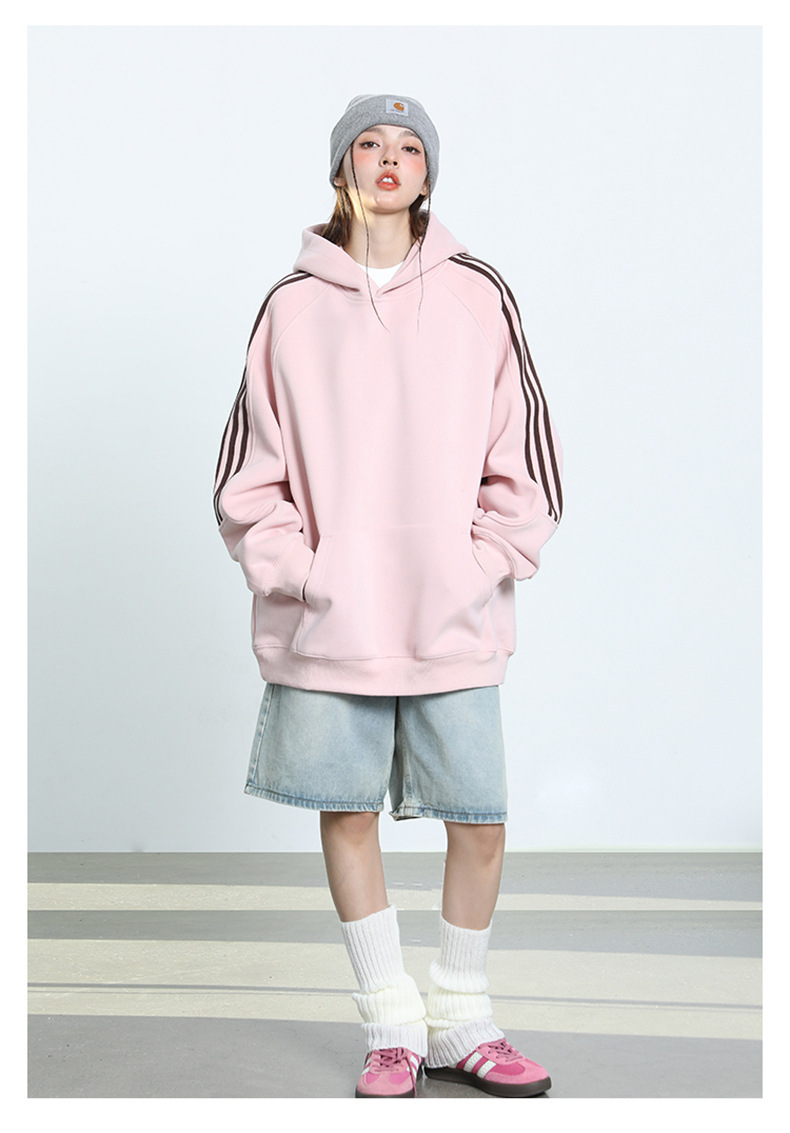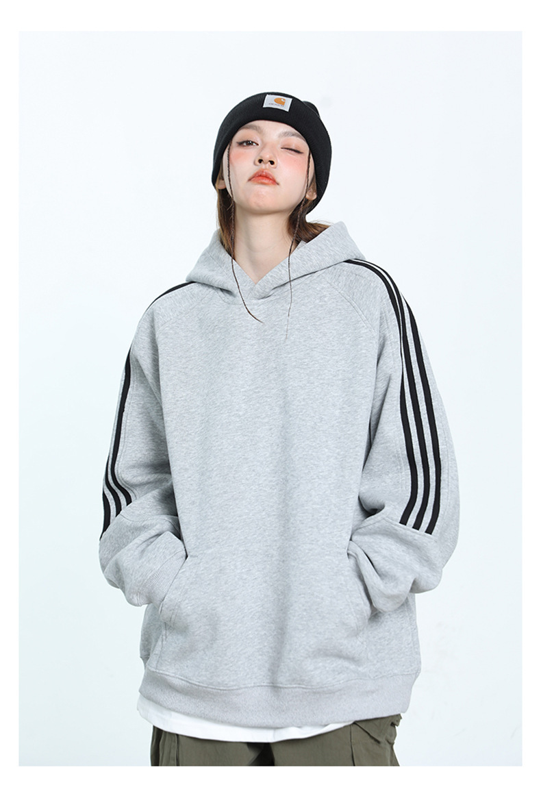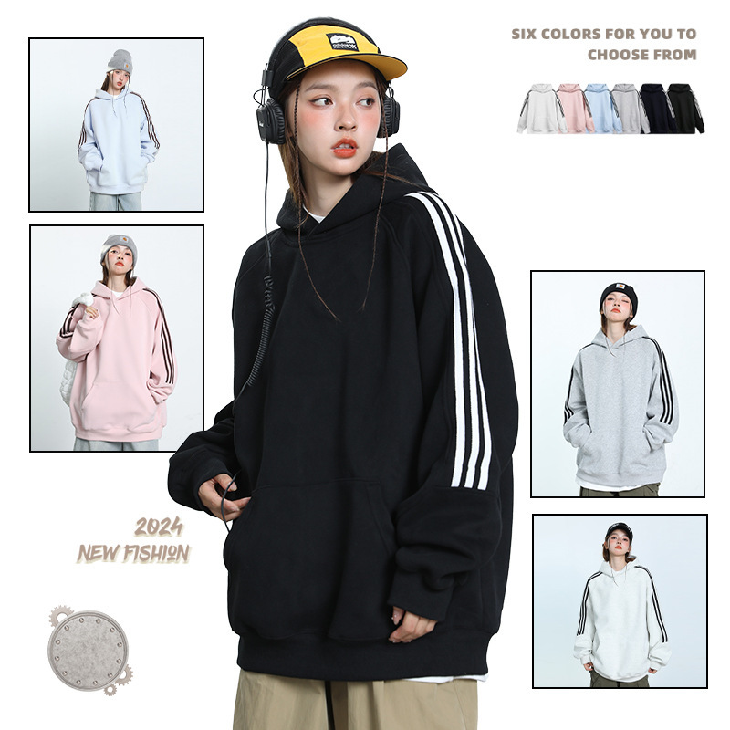 ANS 아메리칸 스타일 삼선 헤비 후드티 남녀공용 2025 봄 가을 무지 트렌디 브랜드 긴팔 커플 상의스토어 가기