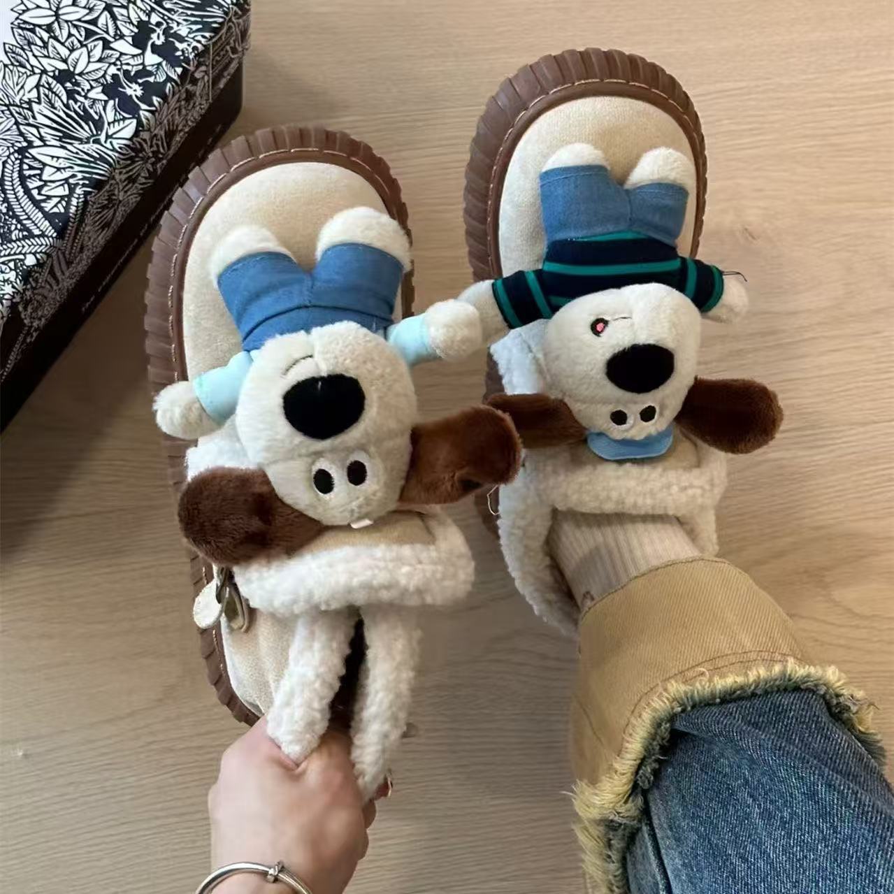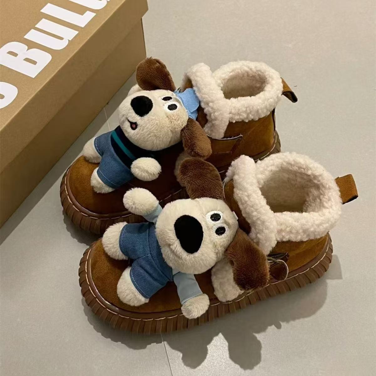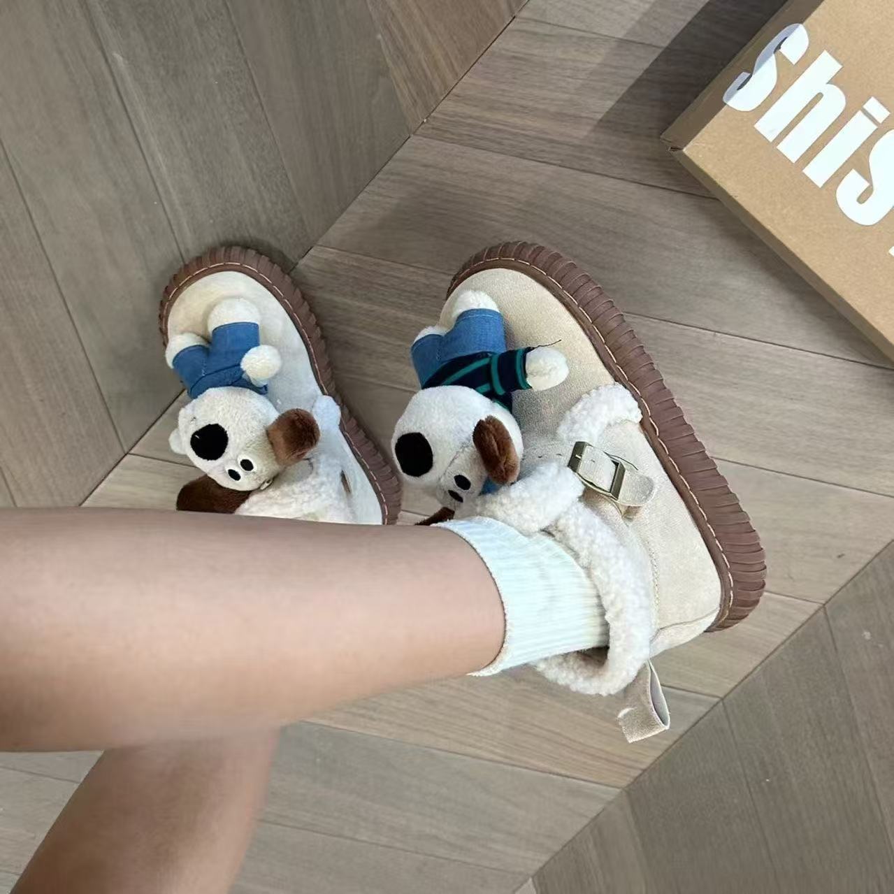 Maillard ~ 핸드독 귀여운 스노우 부츠 여성용 따뜻한 빵 코튼 슈즈 2024 겨울 새로운 편안한 마오 마오 신발스토어 가기