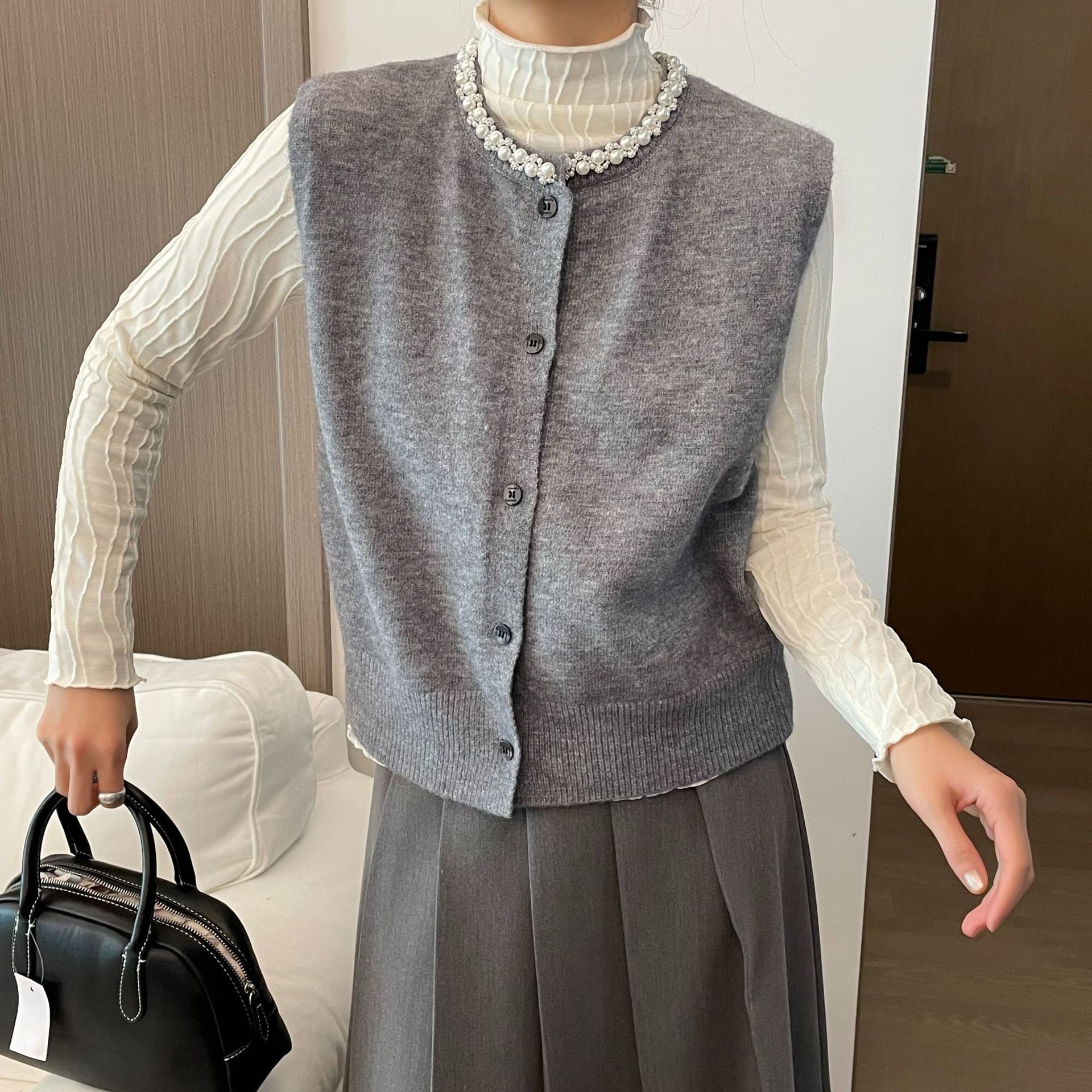 Lanzhi 의류 프렌치 라인스톤 니트 조끼 여성 2025 년 봄 새로운 쌓인 외부 스웨터 코트 250043스토어 가기