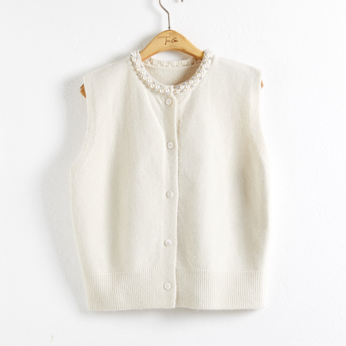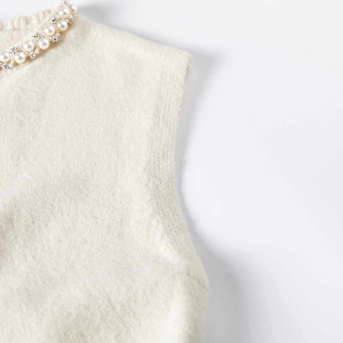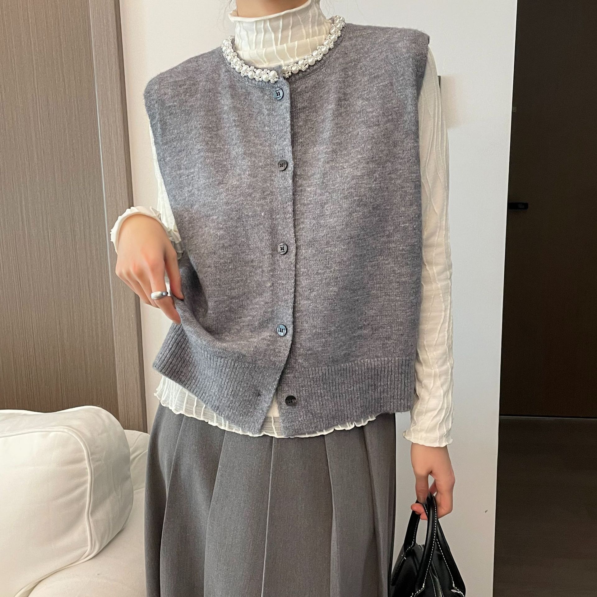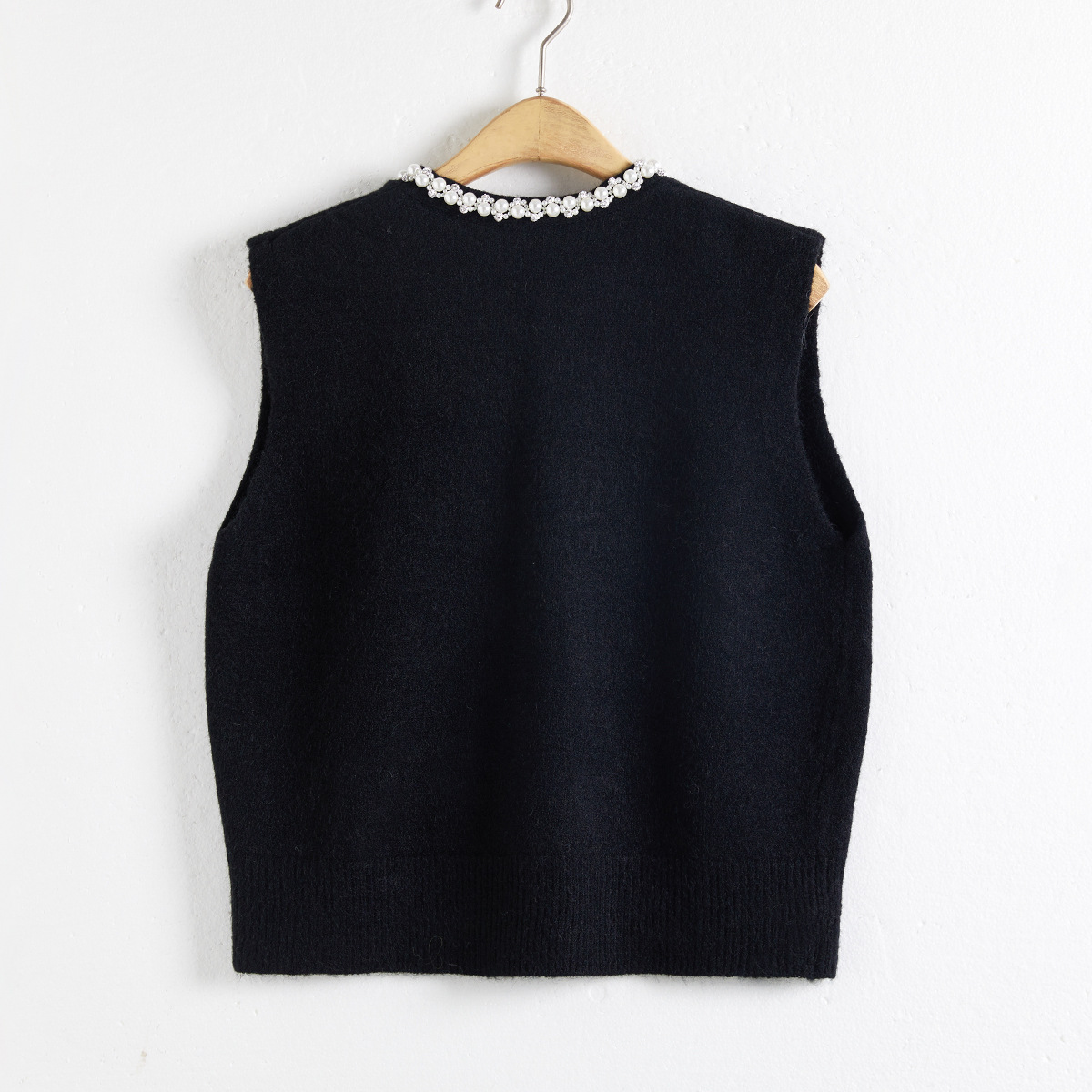 Lanzhi 의류 프렌치 라인스톤 니트 조끼 여성 2025 년 봄 새로운 쌓인 외부 스웨터 코트 250043
