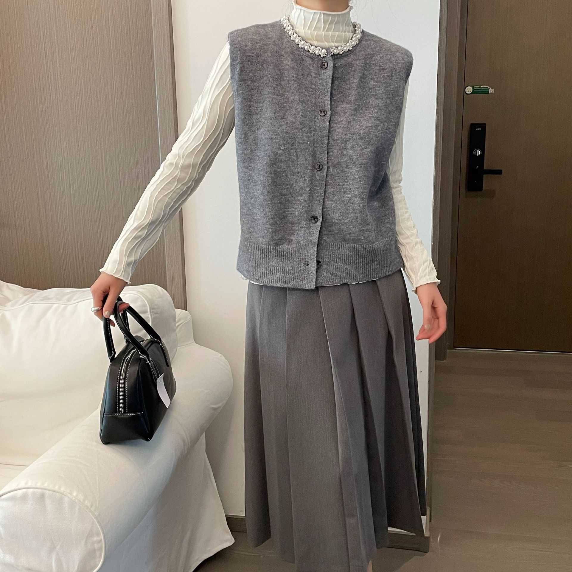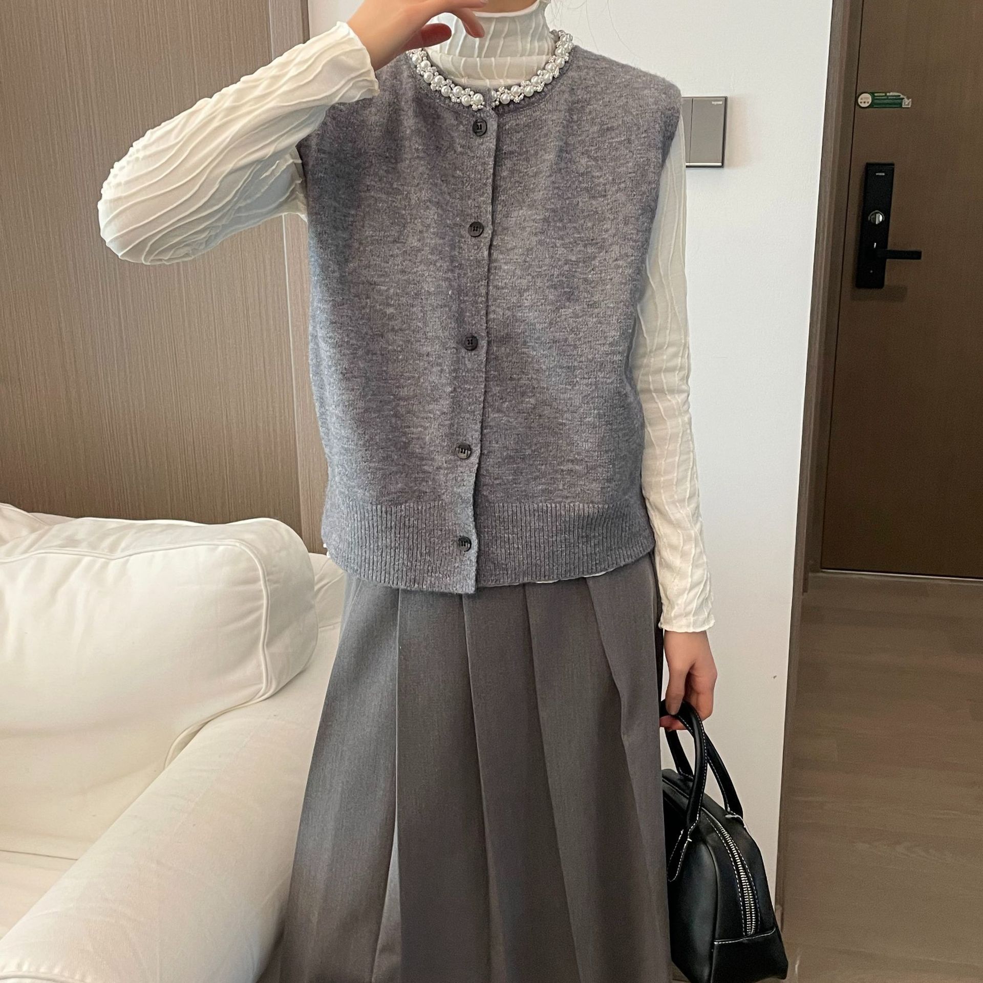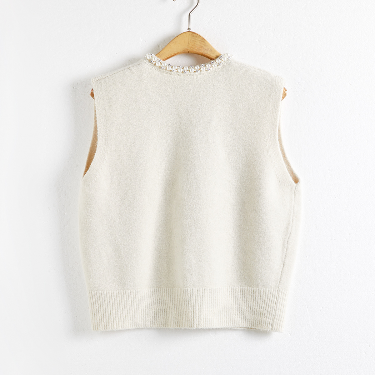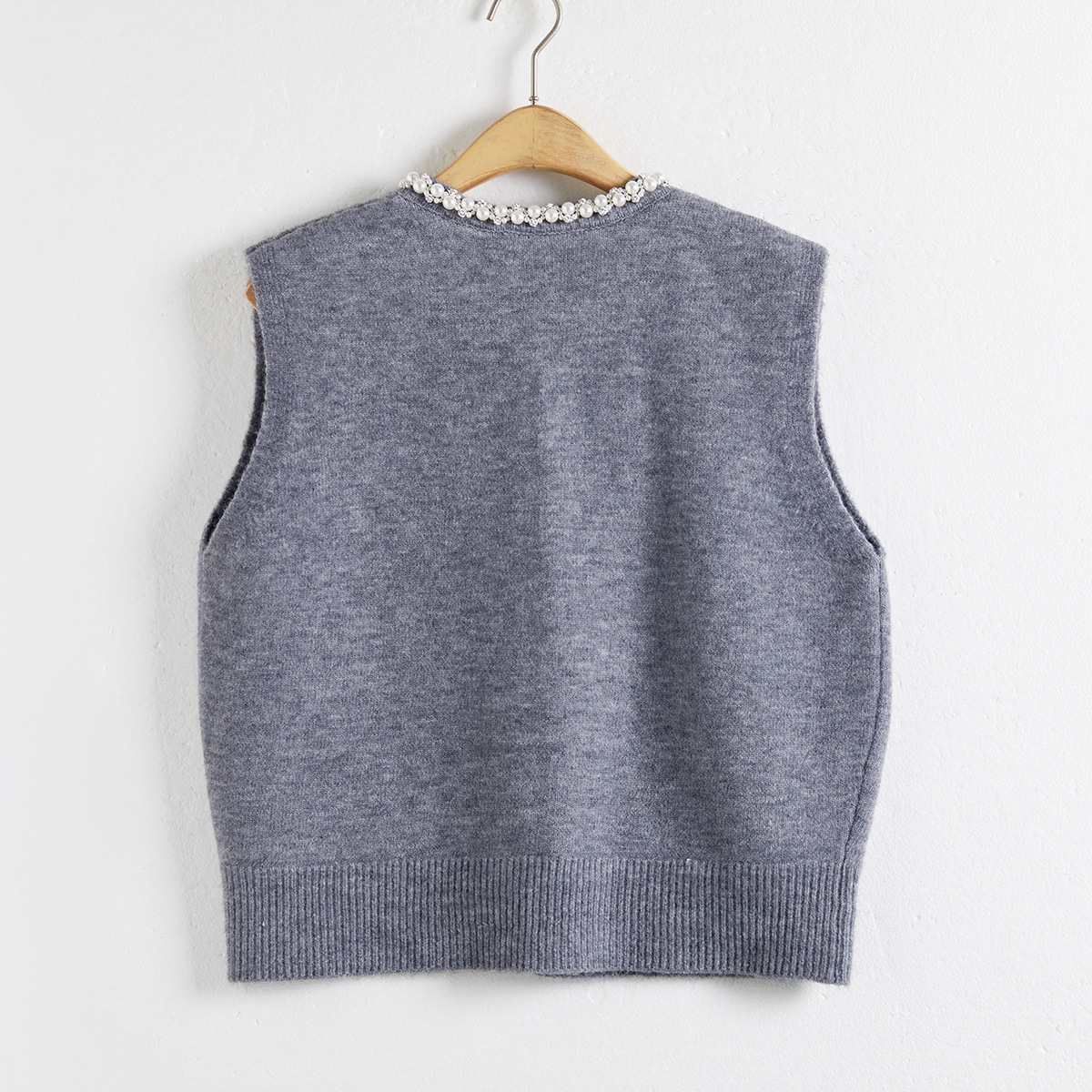 Lanzhi 의류 프렌치 라인스톤 니트 조끼 여성 2025 년 봄 새로운 쌓인 외부 스웨터 코트 250043