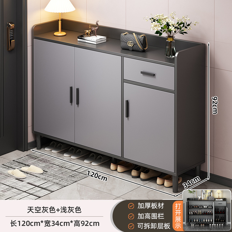 • 라이트 럭셔리 그레이 [완전 암막 캐비닛 도어] 120_34_92CM 금속 손잡이 + 검정색 금속 다리, 탈부착 및 조절 가능한 선반