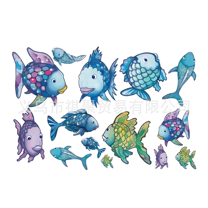 국경 간 대외 무역 무지개 물고기 PVC 스티커 만화 동물 물고기 스티커 어린이 방 장식 벽 스티커
