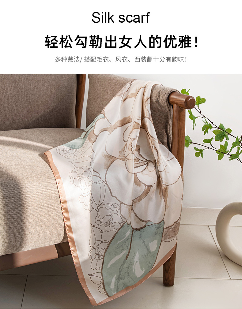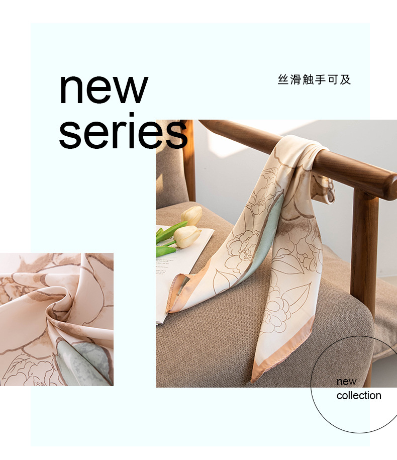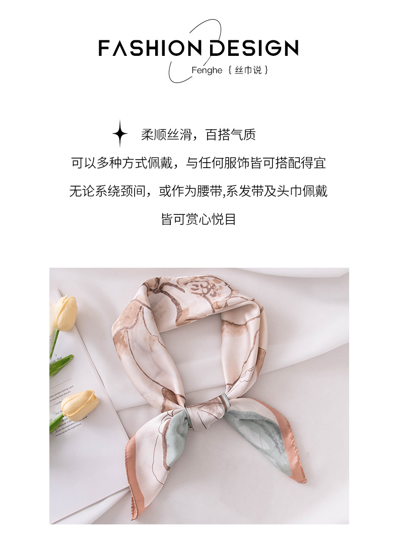 25 새로운 실크 작은 광장 스카프 여성 일본과 한국 스타일 크레이프 새틴 인쇄 조커 스튜어디스 스카프