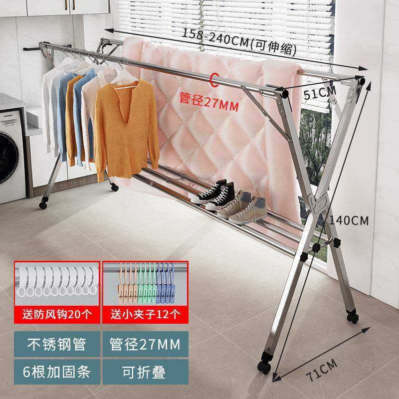 실내 및 실외 X 형 원형 튜브 텔레스코픽 건조 랙 바닥 접이식 건조 퀼트 옷 발코니 옷 랙 건조 극스토어 가기