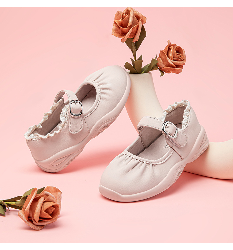 하비브 곰 소녀 작은 가죽 신발 봄과 가을 공주 신발 프랑스 얕은 핑크 고무 밑창 신발 가죽 신발 머리카락 세대