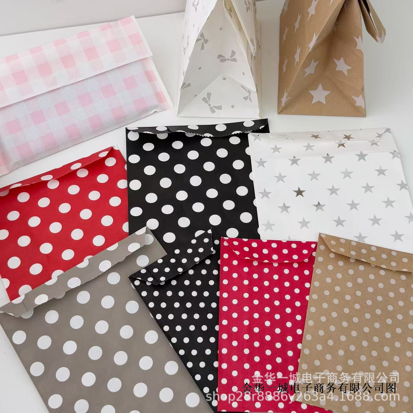 • 빨간색 물방울 무늬 종이 봉투(8x15cm), 크라프트지, 10개/팩
