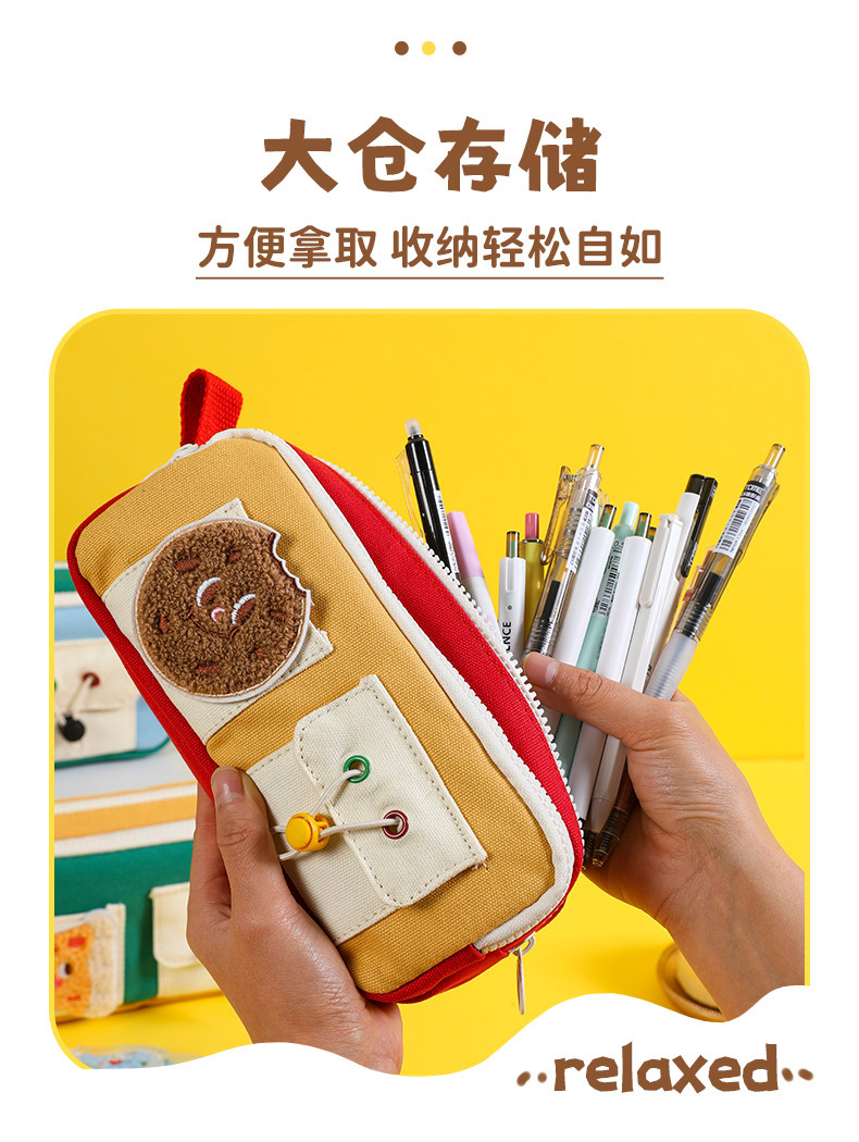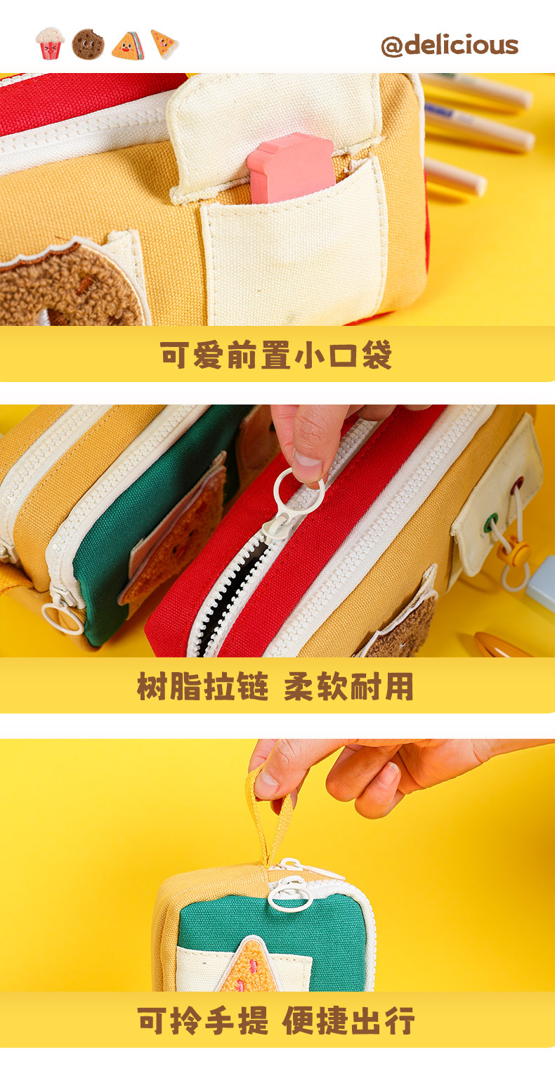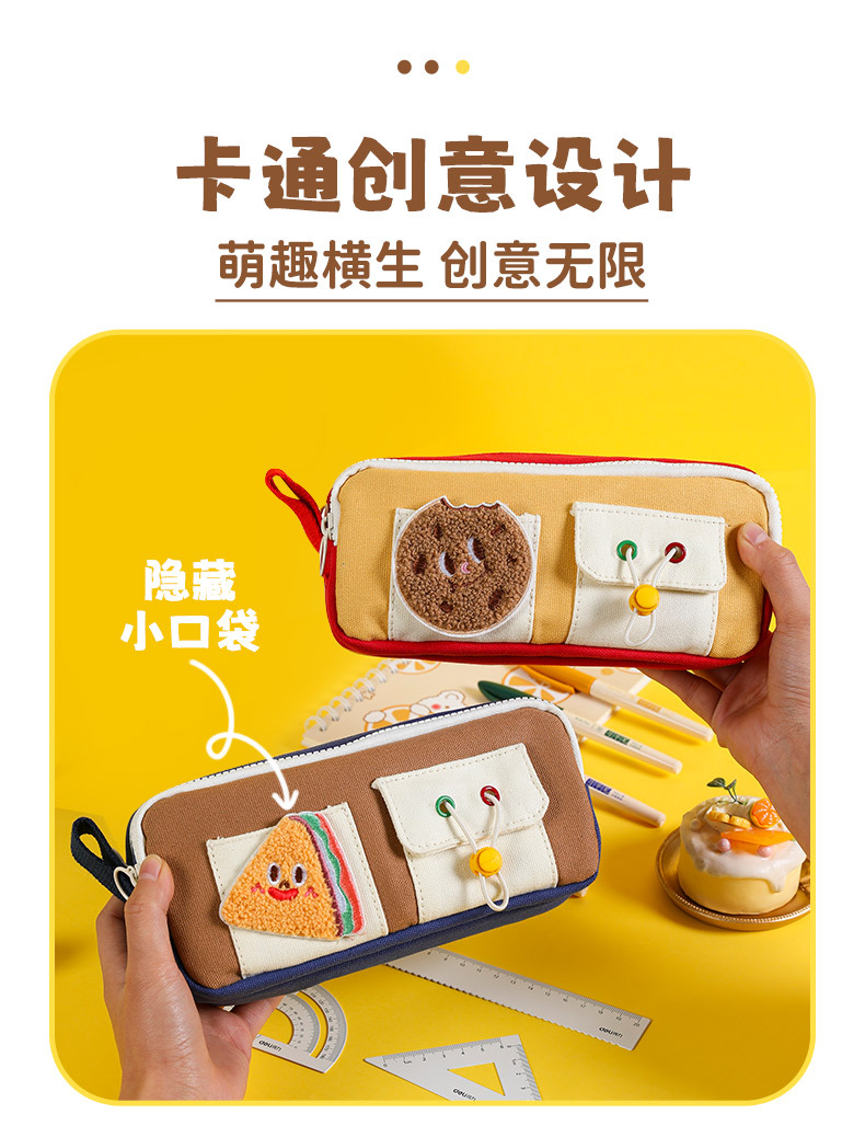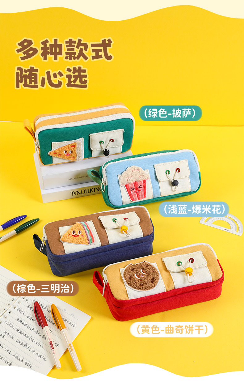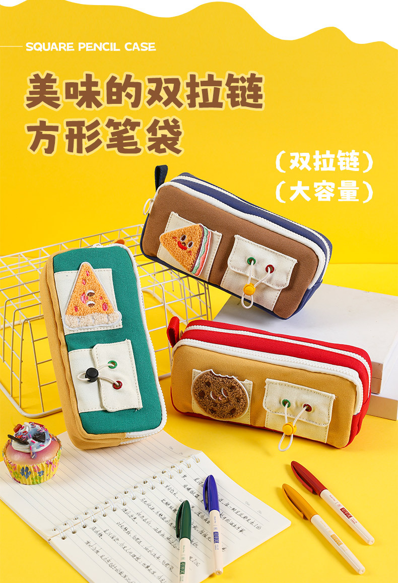 TOME 귀여운 만화 피자 샌드위치 더블 지퍼 연필 케이스 대용량, 높은 색상 가치 소녀 학생 연필 케이스스토어 가기