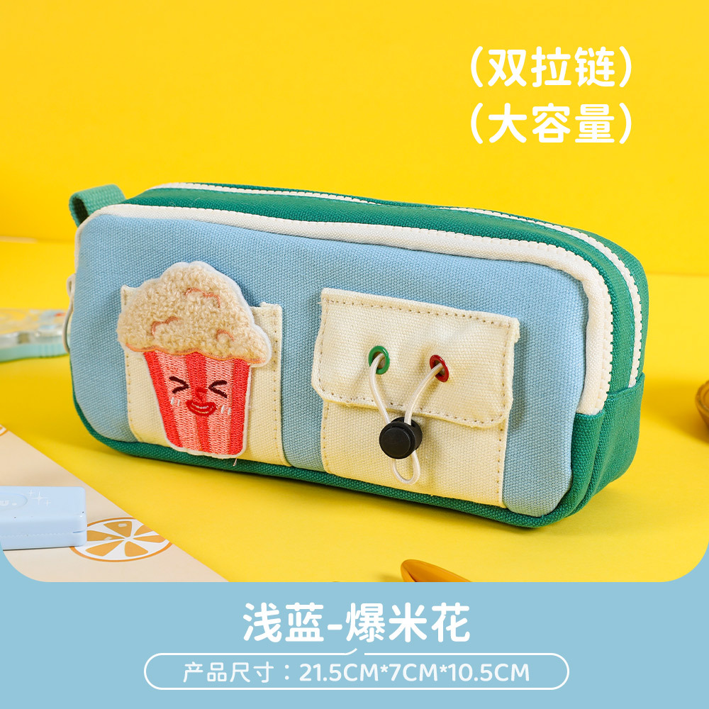 • 맛있는 비대칭 더블풀 사각 필통 - 라이트블루(팝콘)