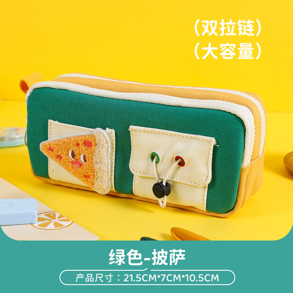 • 맛있는 비대칭 더블 풀 사각 필통 - 그린(피자)