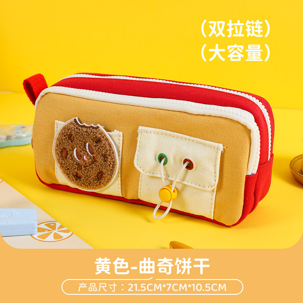 • 맛있는 비대칭 더블풀 사각 필통-옐로우(쿠키)