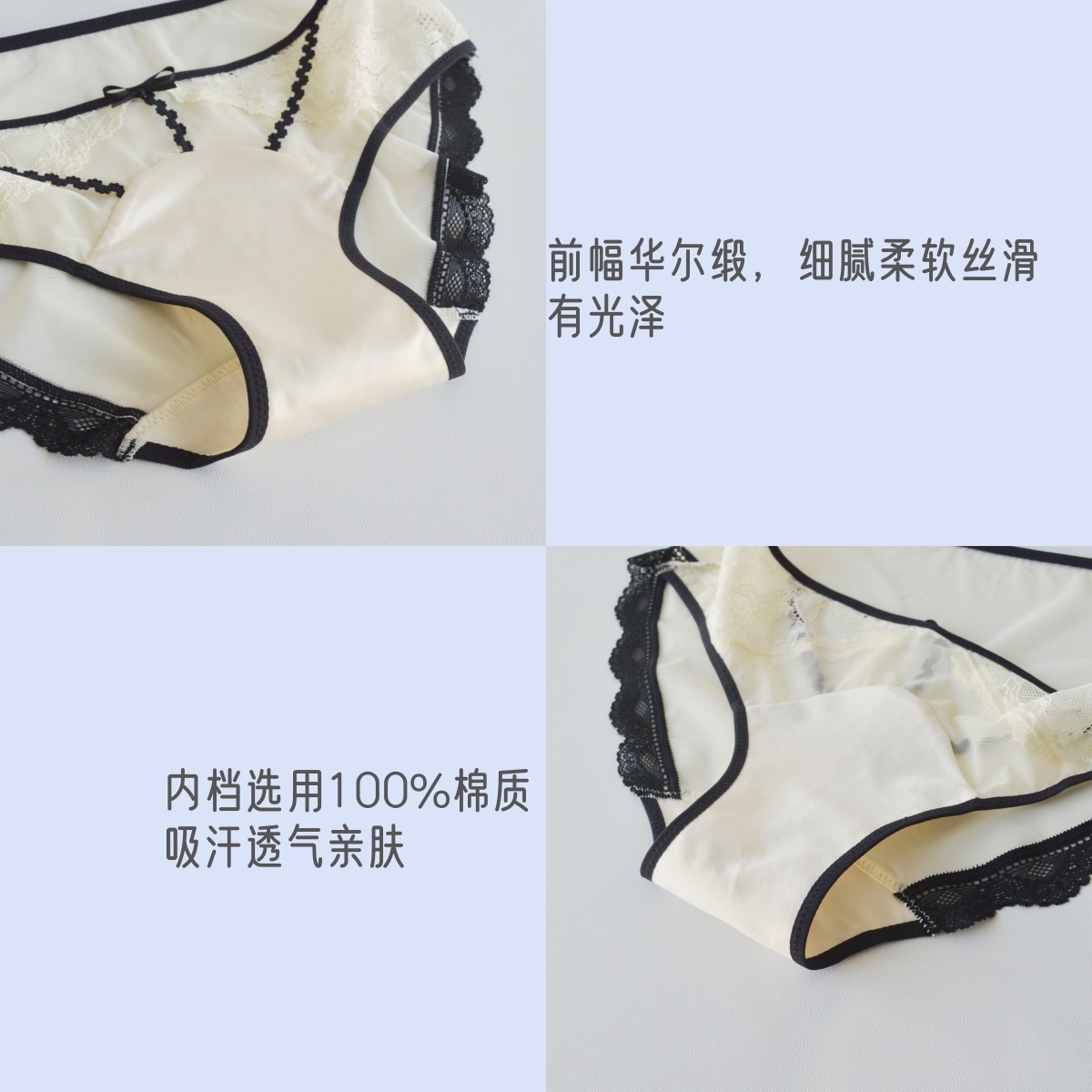 프렌치 스타일 퓨어 섹시 레이스 브리프 라이트 럭셔리 새틴 메쉬 통기성 여성 속옷 패션 레이스 벌거 벗은 여성 속옷