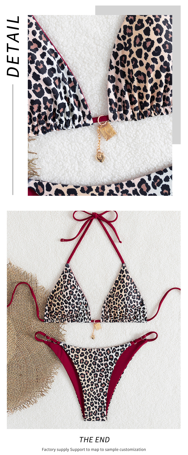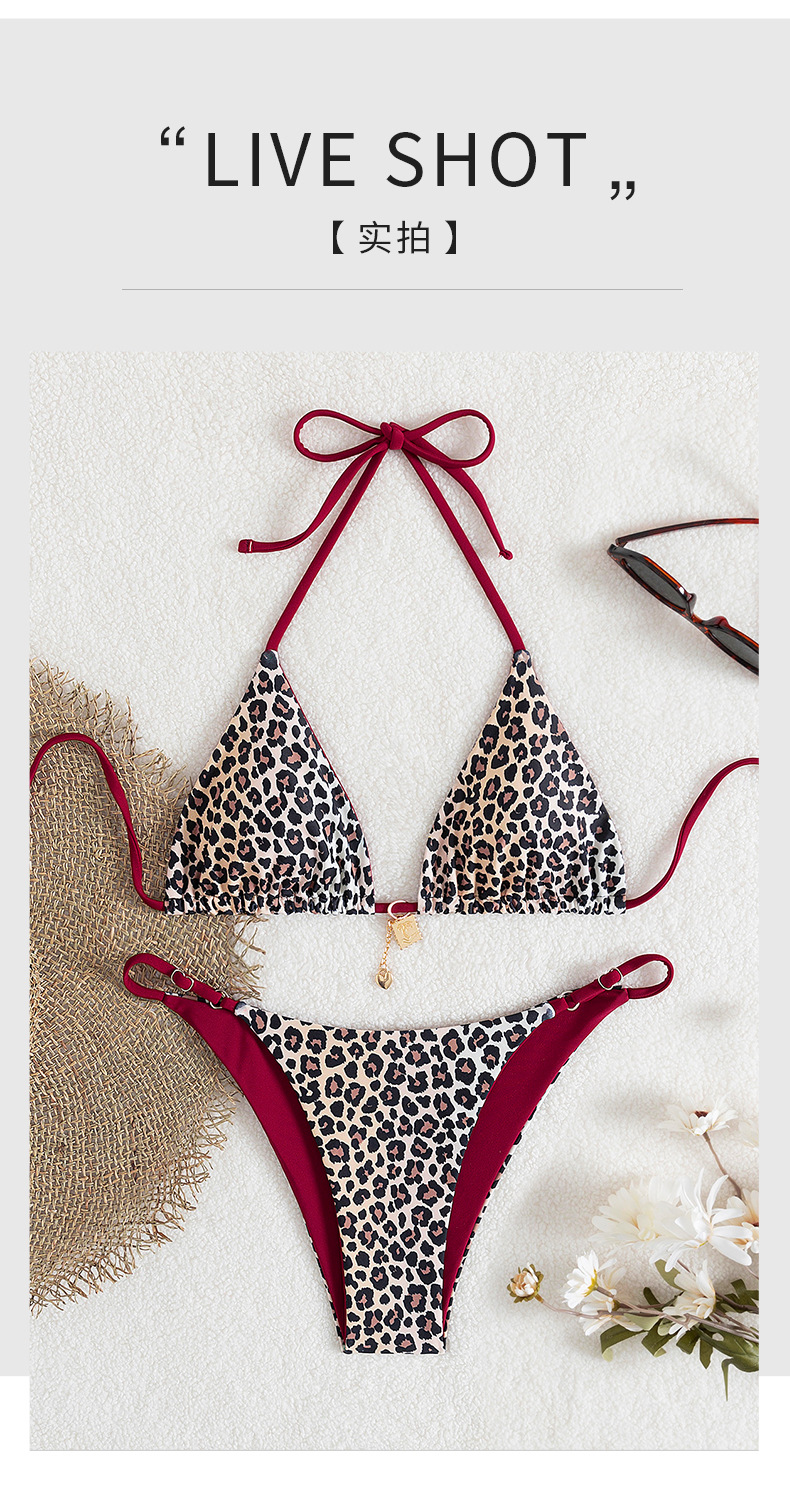 Amazon 수영복 2025 크로스보더 레오파드 프린트 레이스 업 섹시한 비키니 스플릿 비치 3점 수영복 여성용스토어 가기