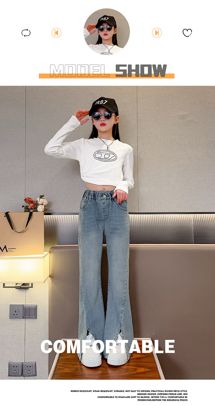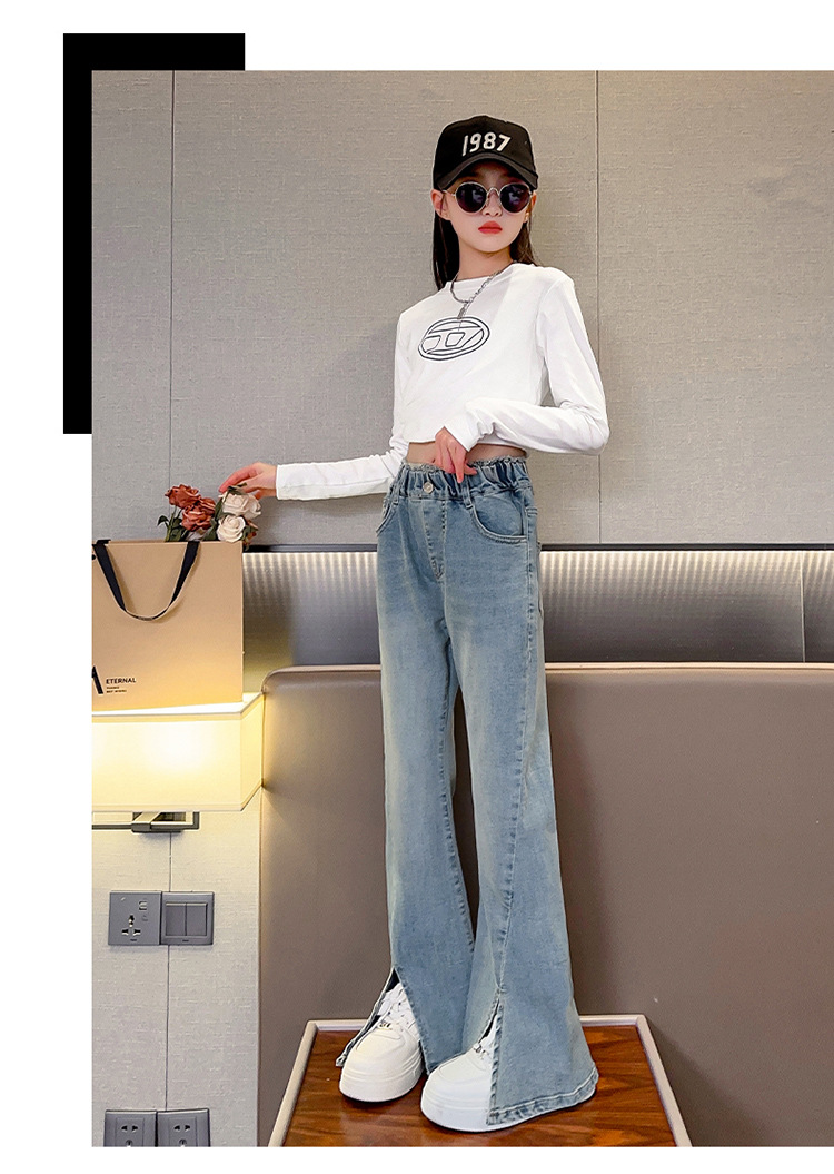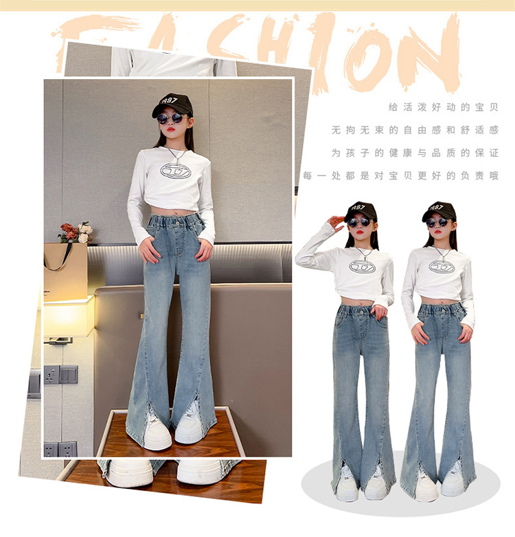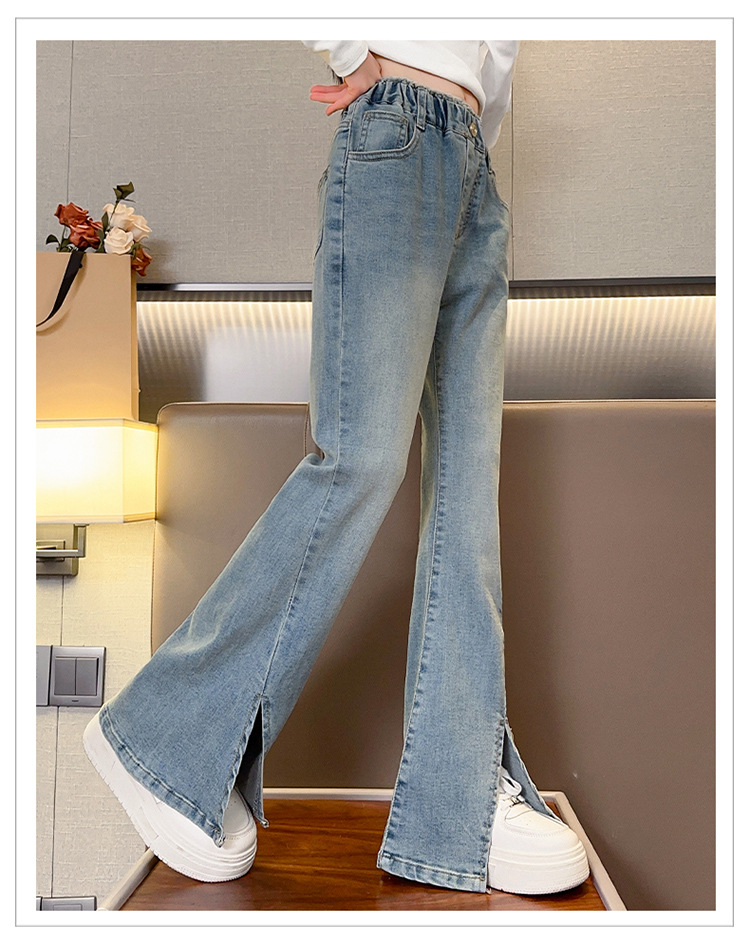 소녀 스플릿 플라 바지 봄과 가을 2025 새로운 중대형 어린이 서양식 캐주얼 긴 어린이 봄 청바지스토어 가기
