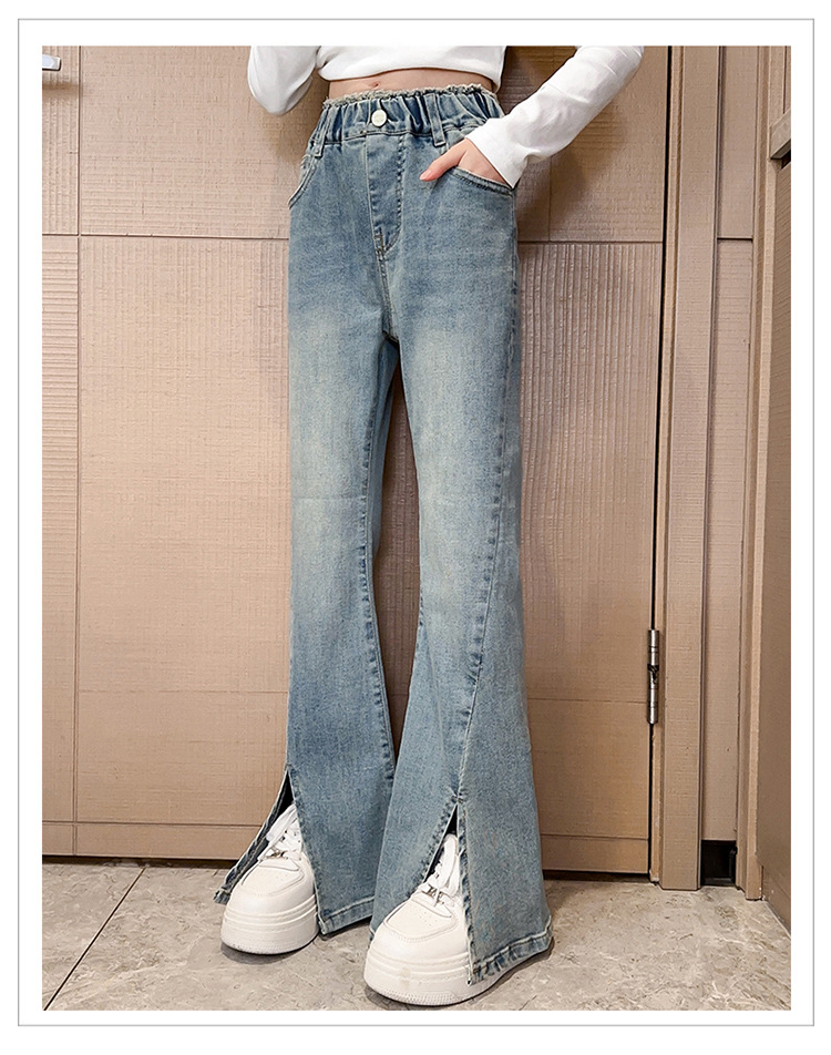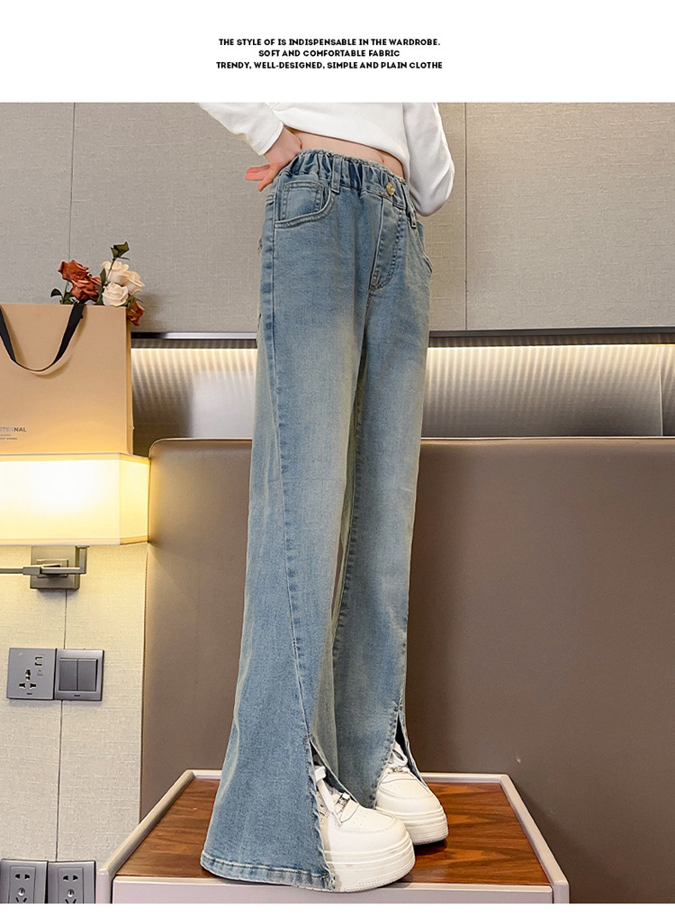 소녀 스플릿 플라 바지 봄과 가을 2025 새로운 중대형 어린이 서양식 캐주얼 긴 어린이 봄 청바지