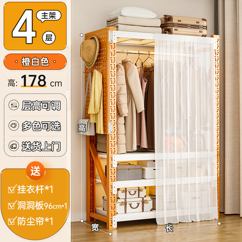 • 주황색과 흰색 3단 - 길이 105, 깊이 60, 높이 178cm [천공판 + 방진커튼 + 옷걸이봉 포함]